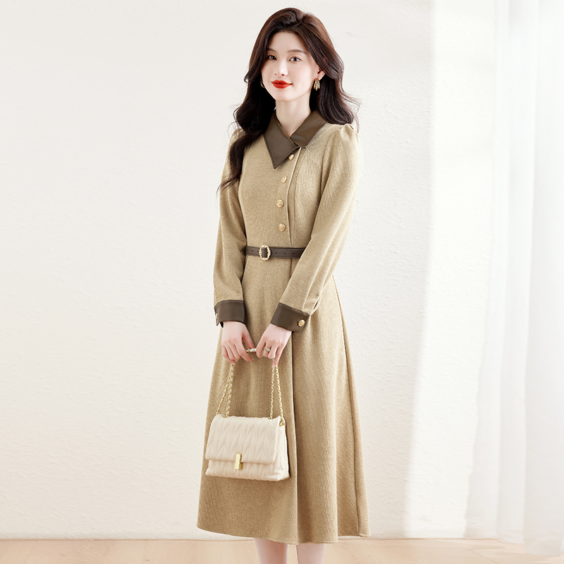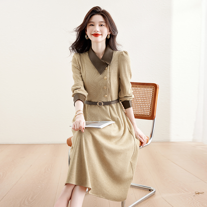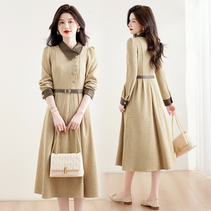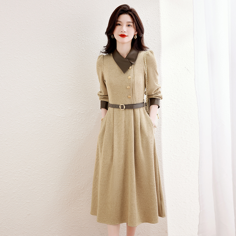 FA52638# 高品质早秋新款穿搭巨好看的掐腰法式长袖连衣裙配腰带 服裝批發女裝批發服飾貨源
