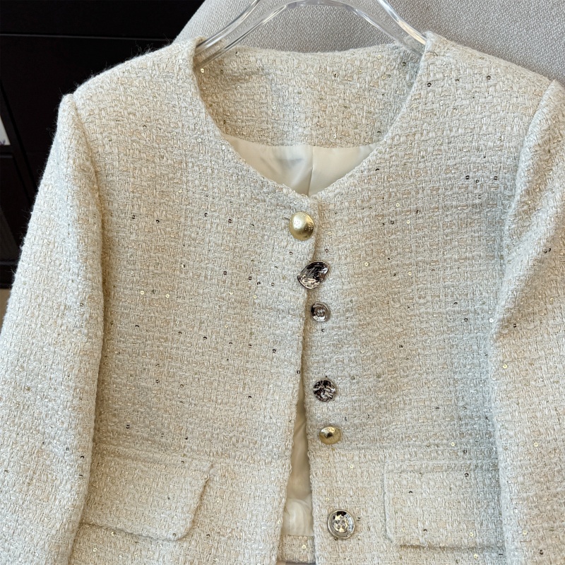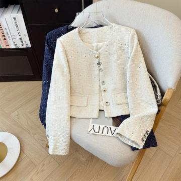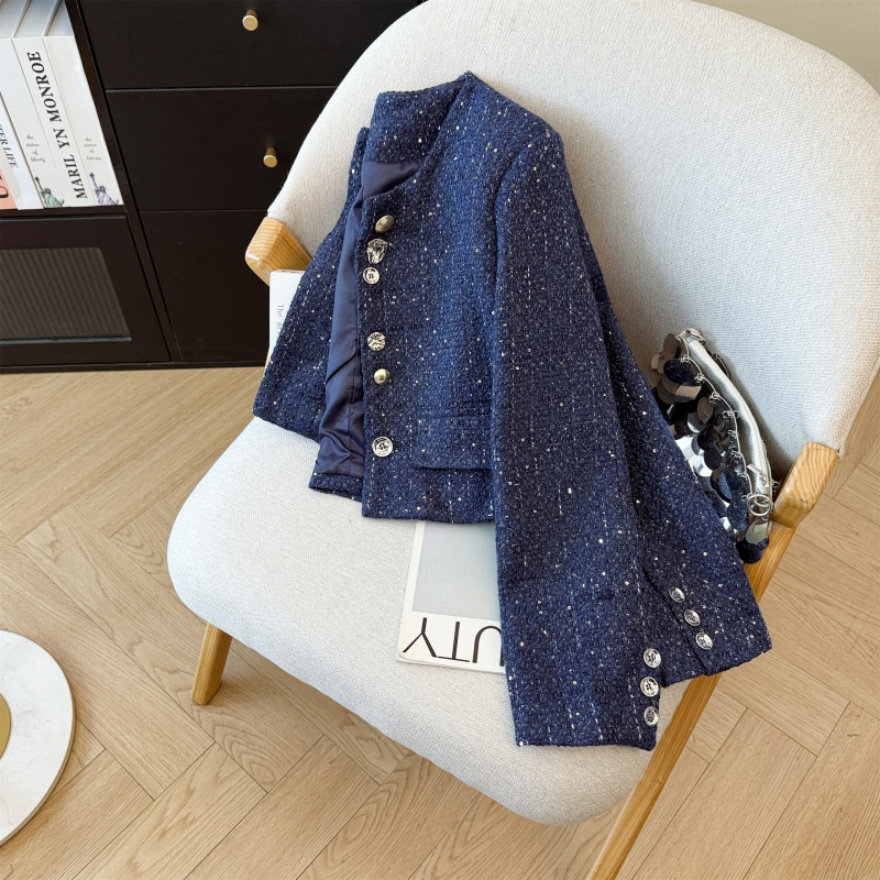 FA52643# 秋冬海青蓝圆领小香风短外套秋季新款气质显瘦上衣 服裝批發女裝批發服飾貨源