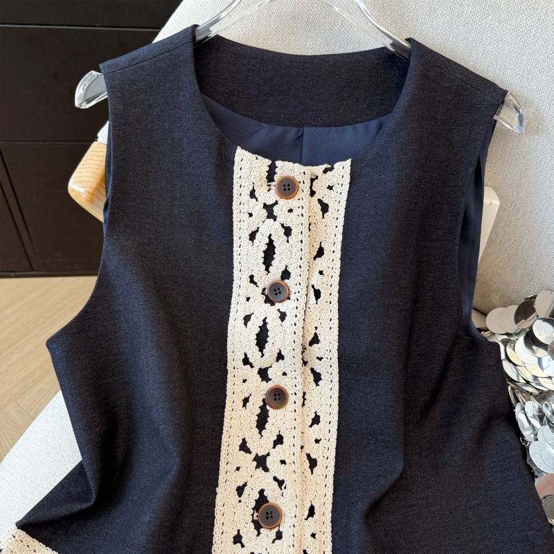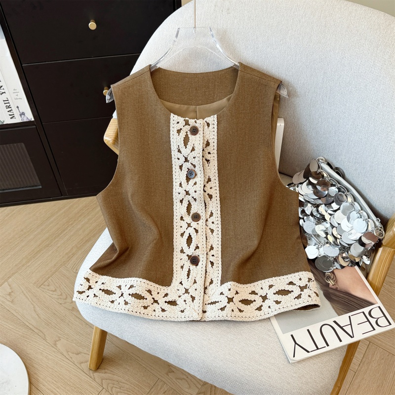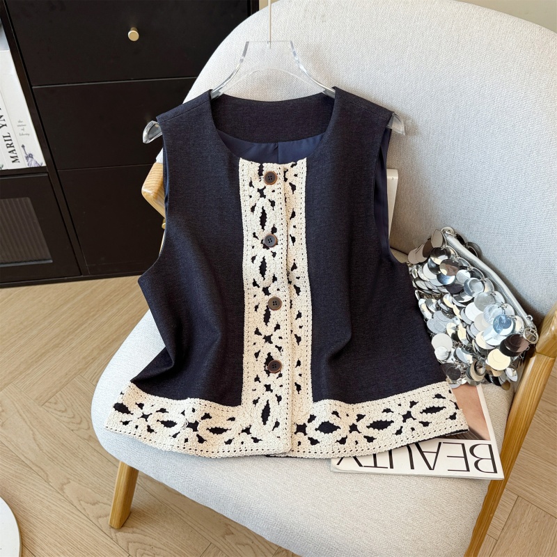 FA52646# 洋气刺绣花边拼接无袖小香风马甲女早秋款复古叠穿百搭坎肩 服裝批發女裝批發服飾貨源