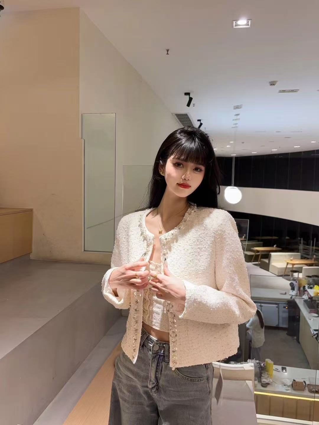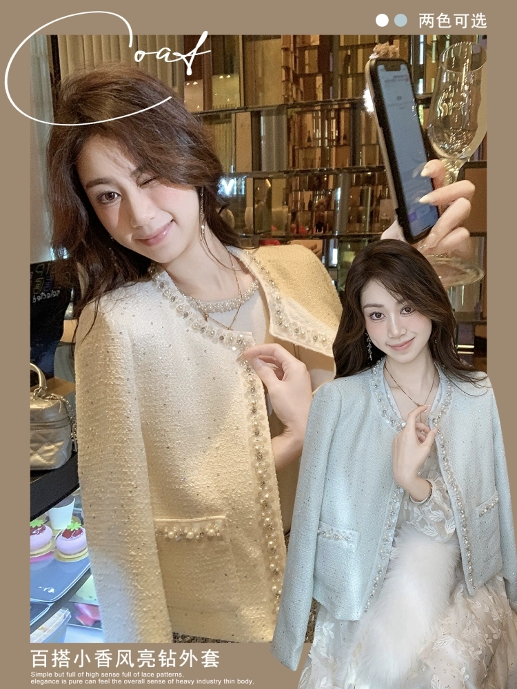FA52648# 鱼兔子的兔子亮钻百搭春秋新款小香风外套女今年流行的短款外套 服裝批發女裝批發服飾貨源