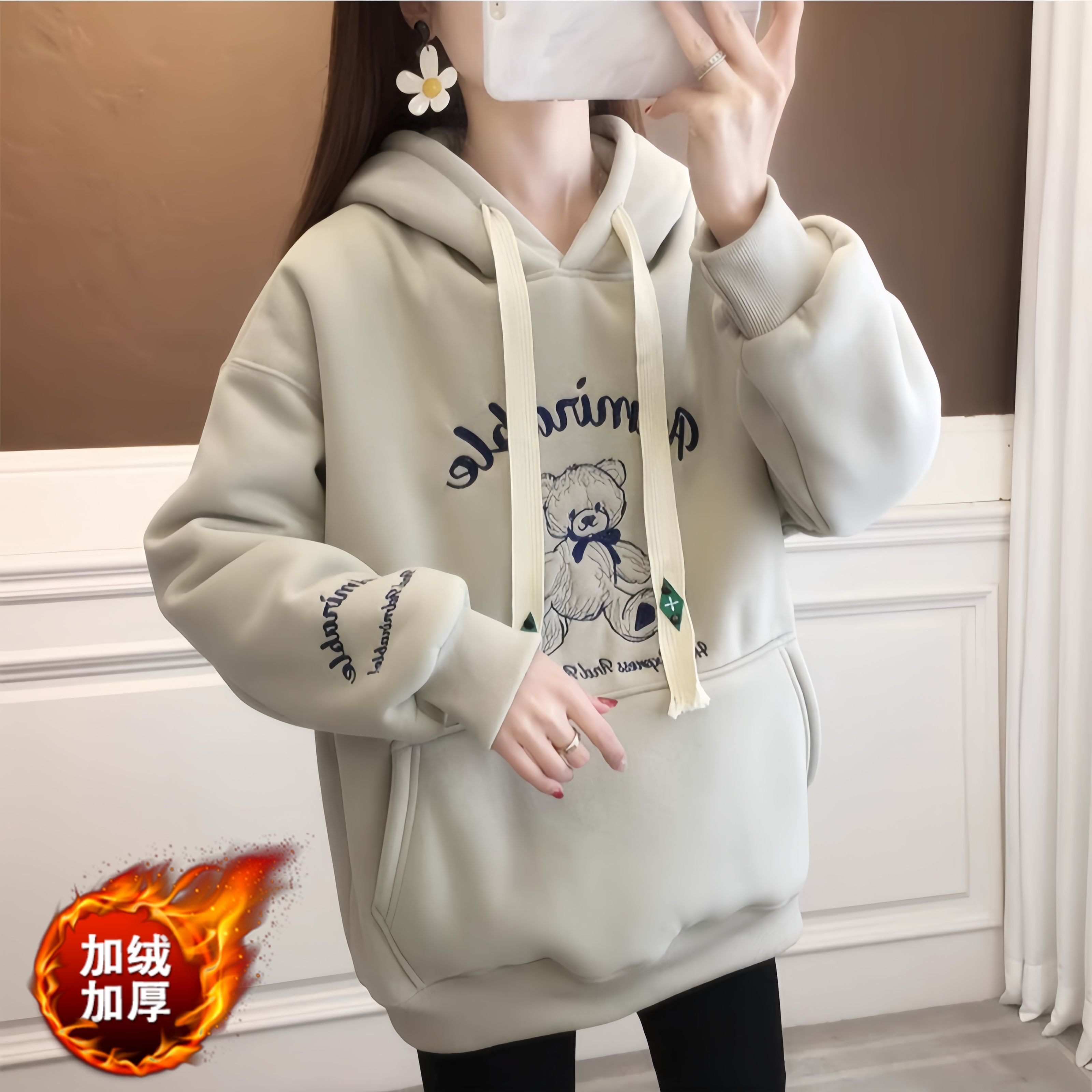 FA52651# 纯棉华棉复合米粒绒新款秋冬加绒加厚连帽卫衣外套 服裝批發女裝批發服飾貨源