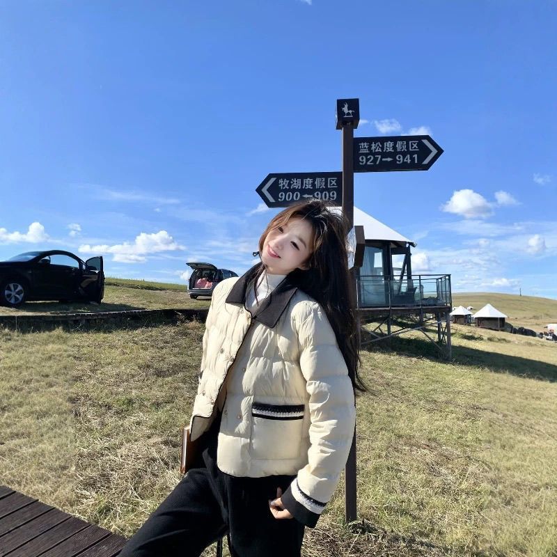 FA52837# 杏色短外套羽绒服杏色小香风百搭款时尚宽松甜美风女装娃娃脸上衣 服裝批發女裝批發服飾貨源