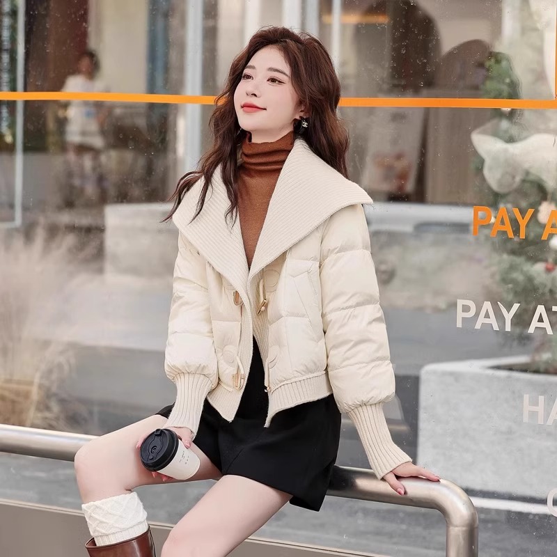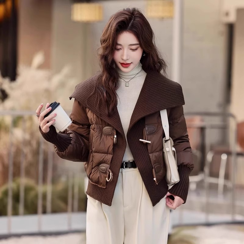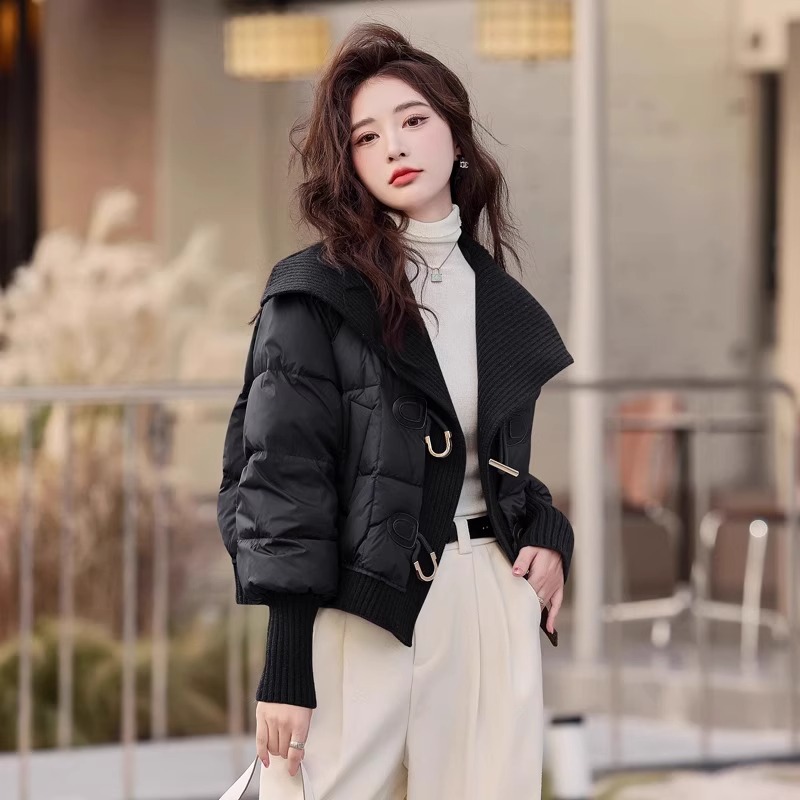 FA52839# 针织拼接假两件羽绒棉服女冬季大码韩版时尚设计感牛角扣棉衣外套 服裝批發女裝批發服飾貨源