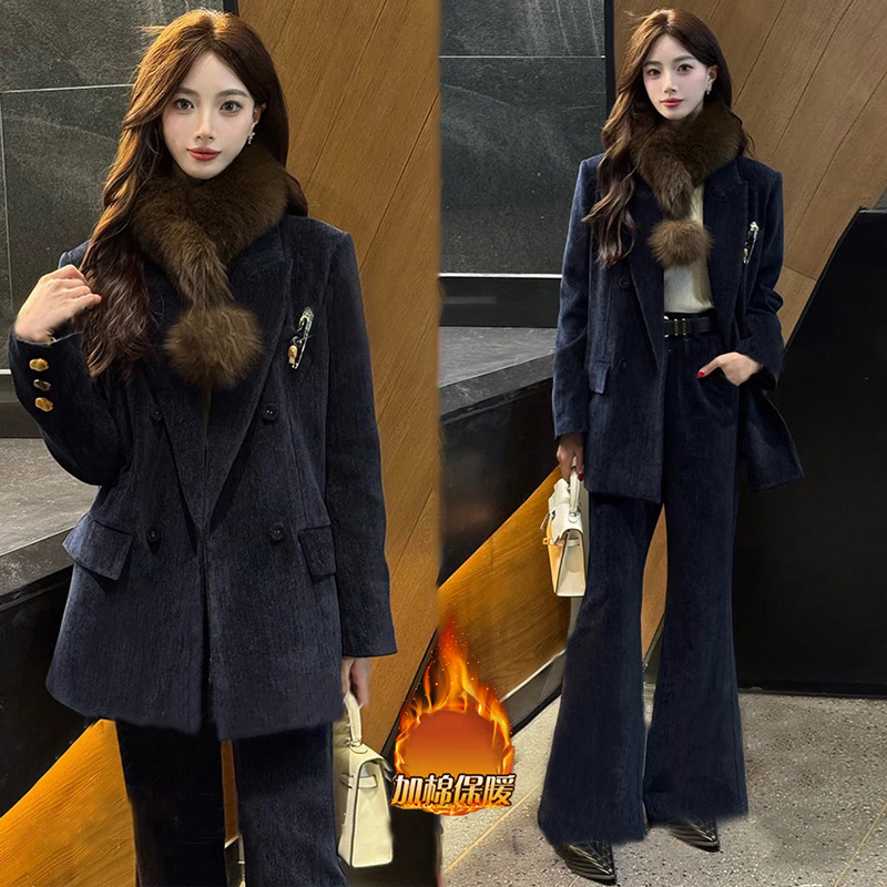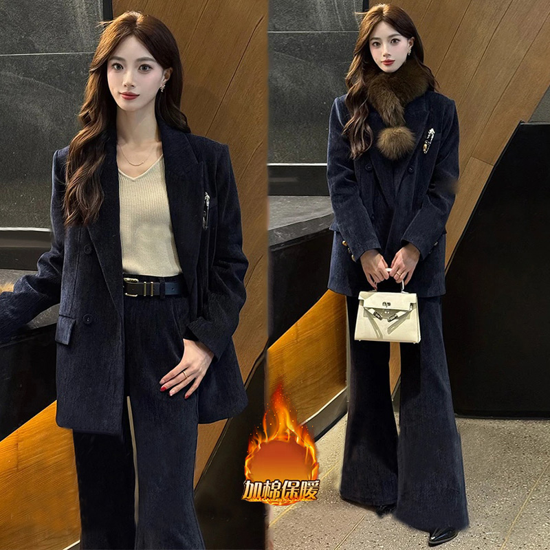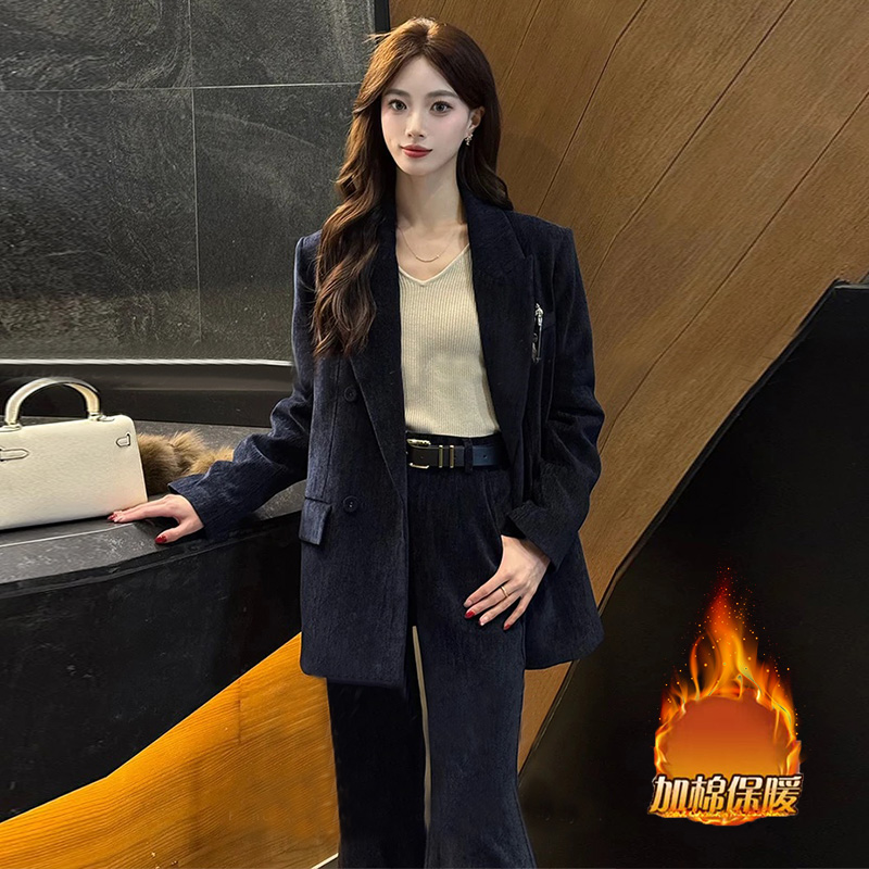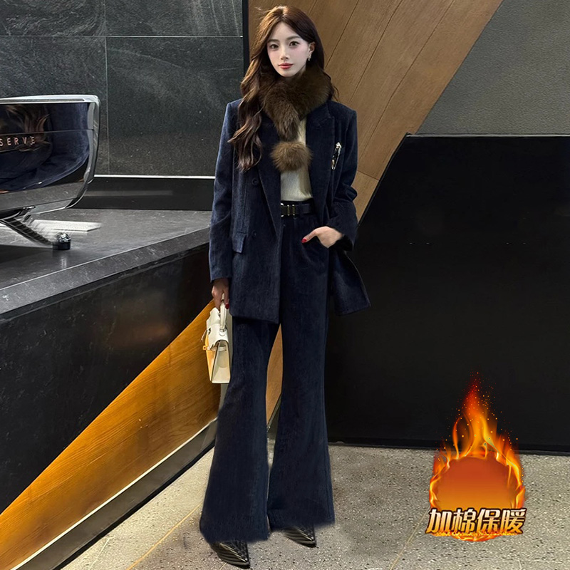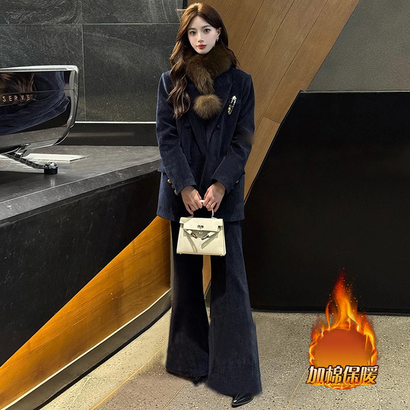 FA53416# 韩系ootd穿搭一整套高级感秋冬加厚西装外套显瘦微喇长裤套装 服裝批發女裝批發服飾貨源