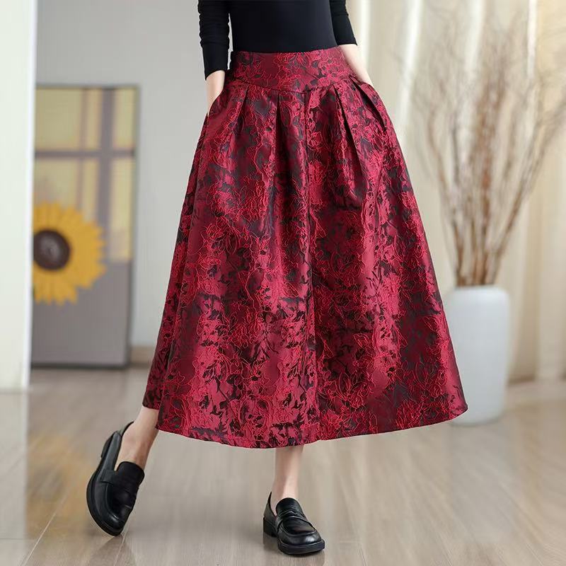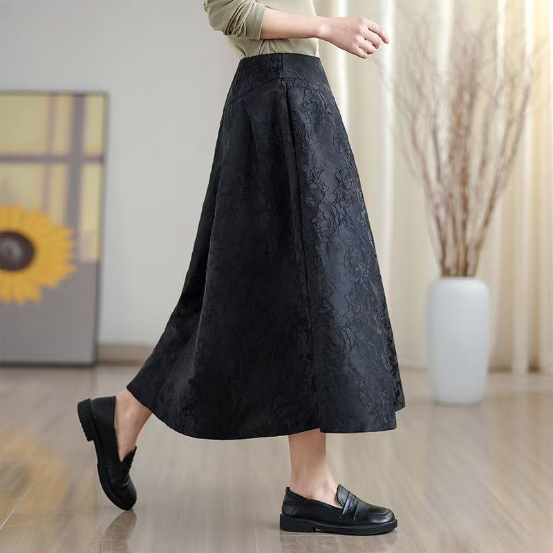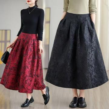 FA53418# 复古提花高腰显瘦半身裙女春季新款时尚百搭A字裙中长裙 服裝批發女裝批發服飾貨源