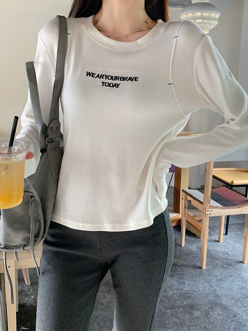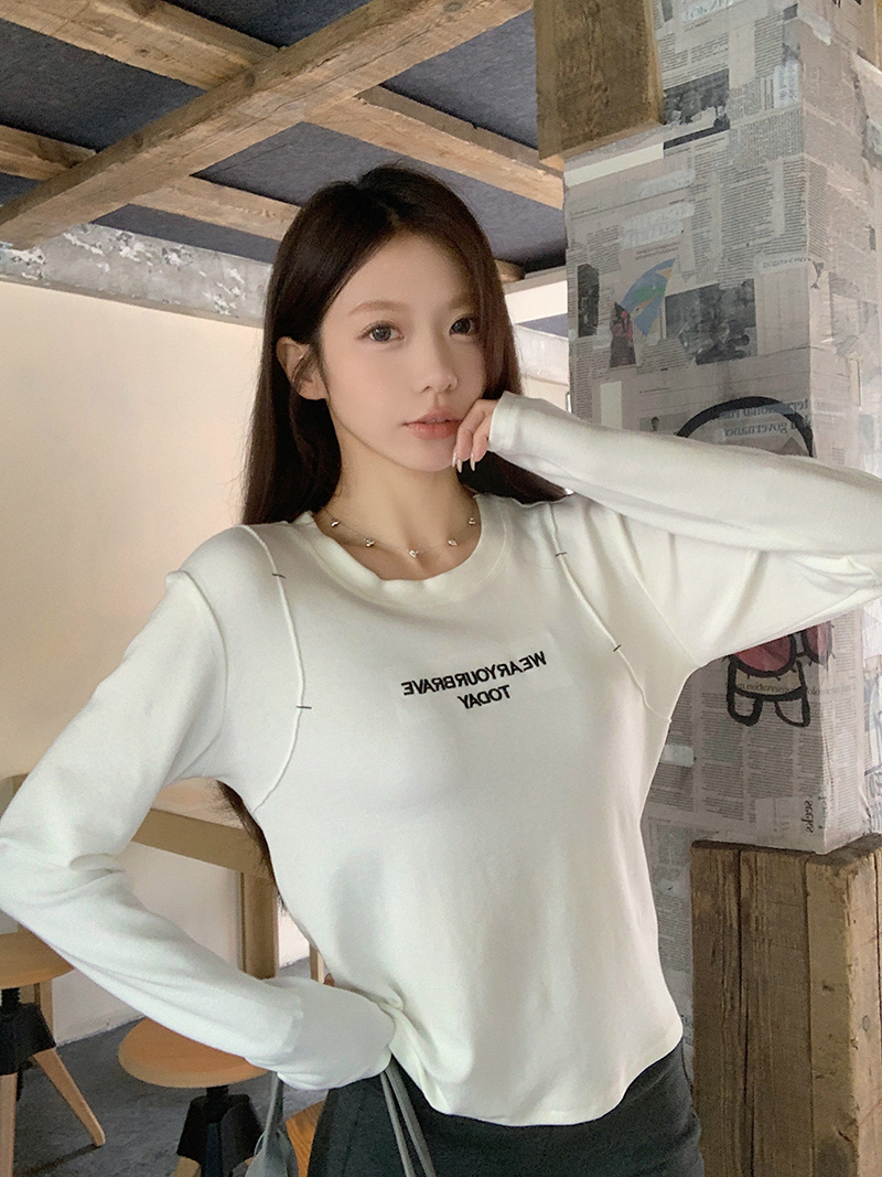 FA53551# 羊绒抓毛长袖t恤打底衫女刺绣薄款春秋新款圆领上衣