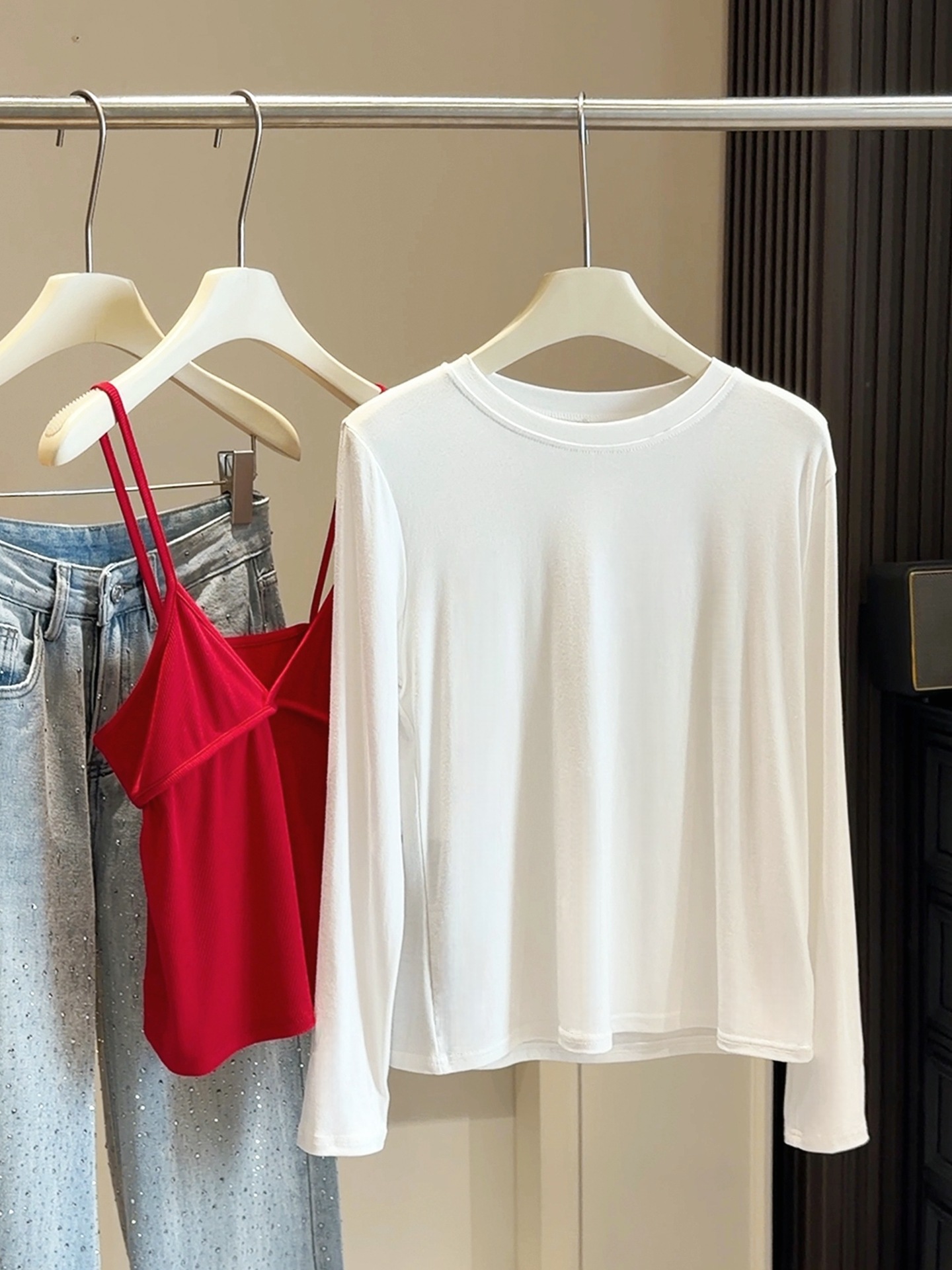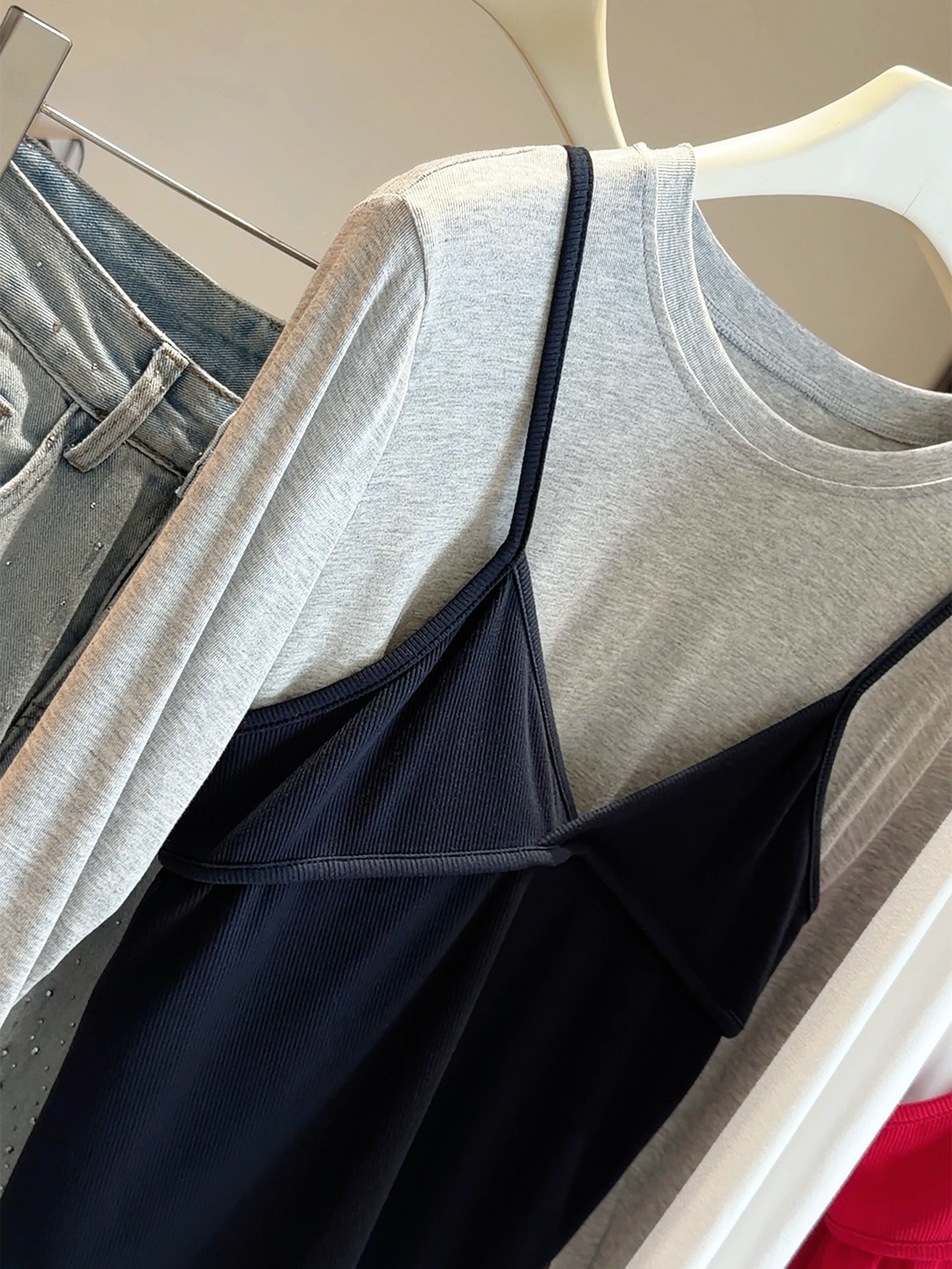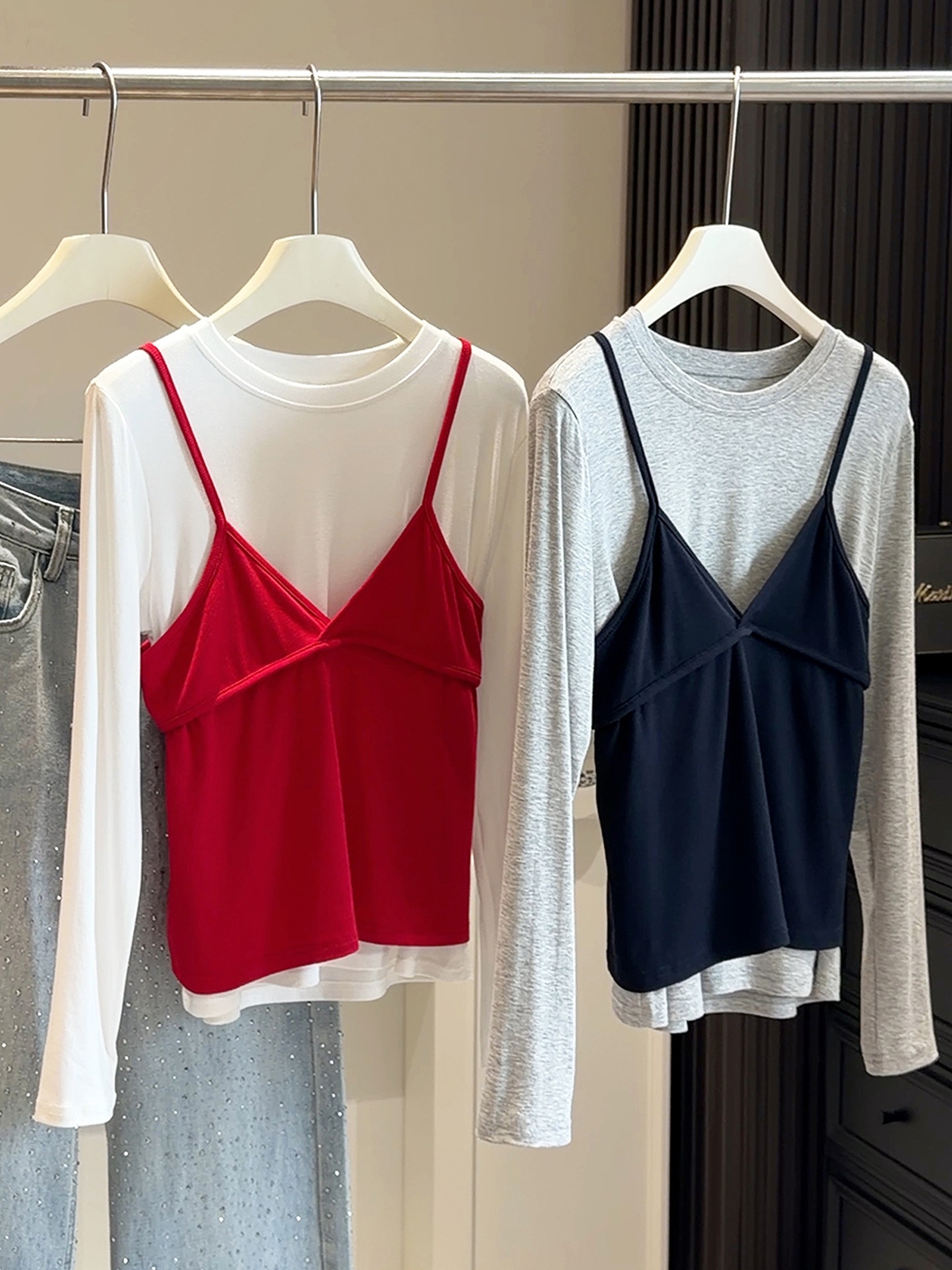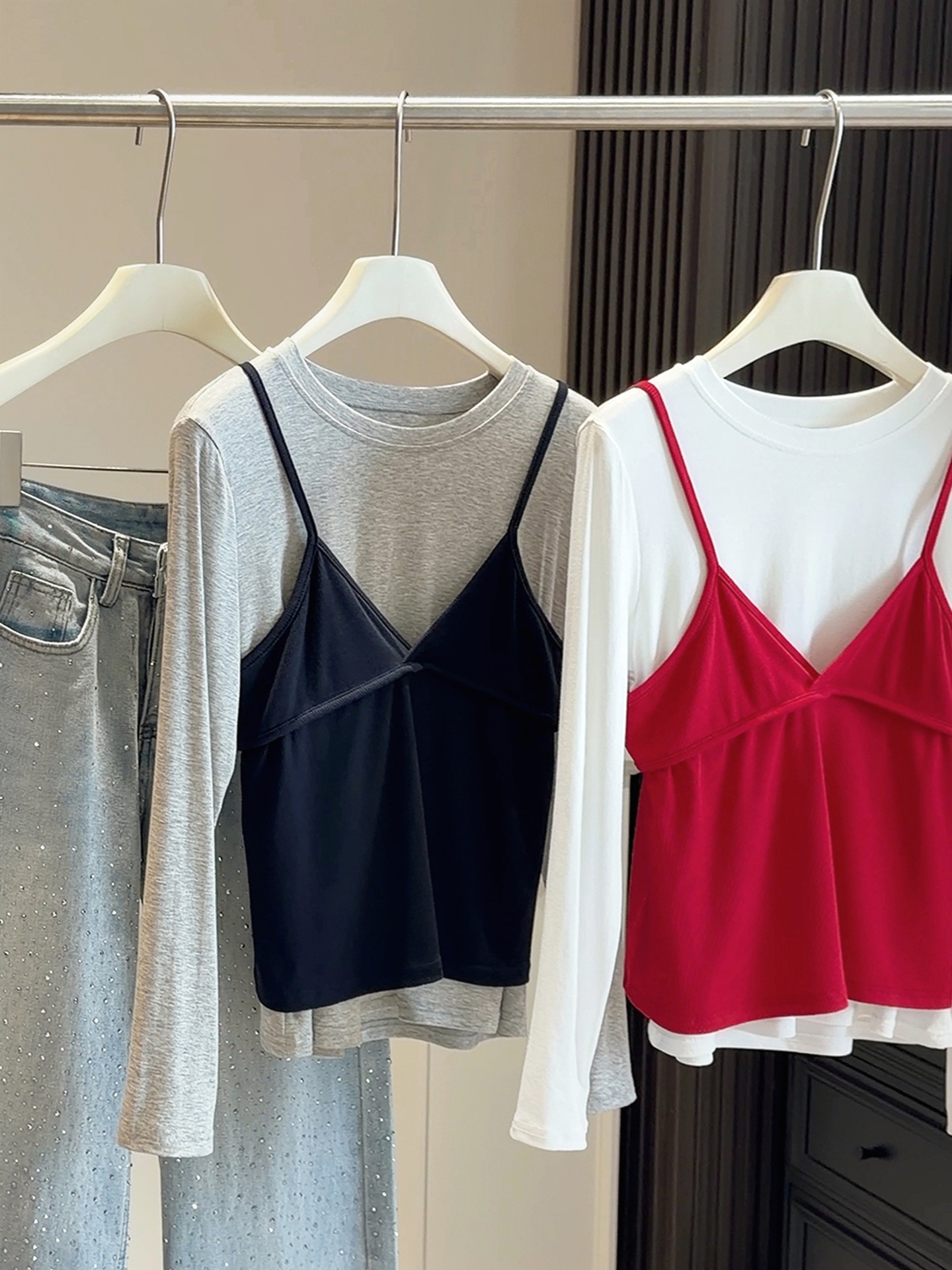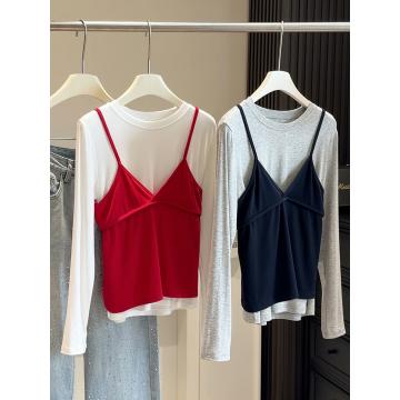 FA53642# V领针织吊带背心女叠穿显瘦时尚长袖T恤两件套春新款韩系套装
