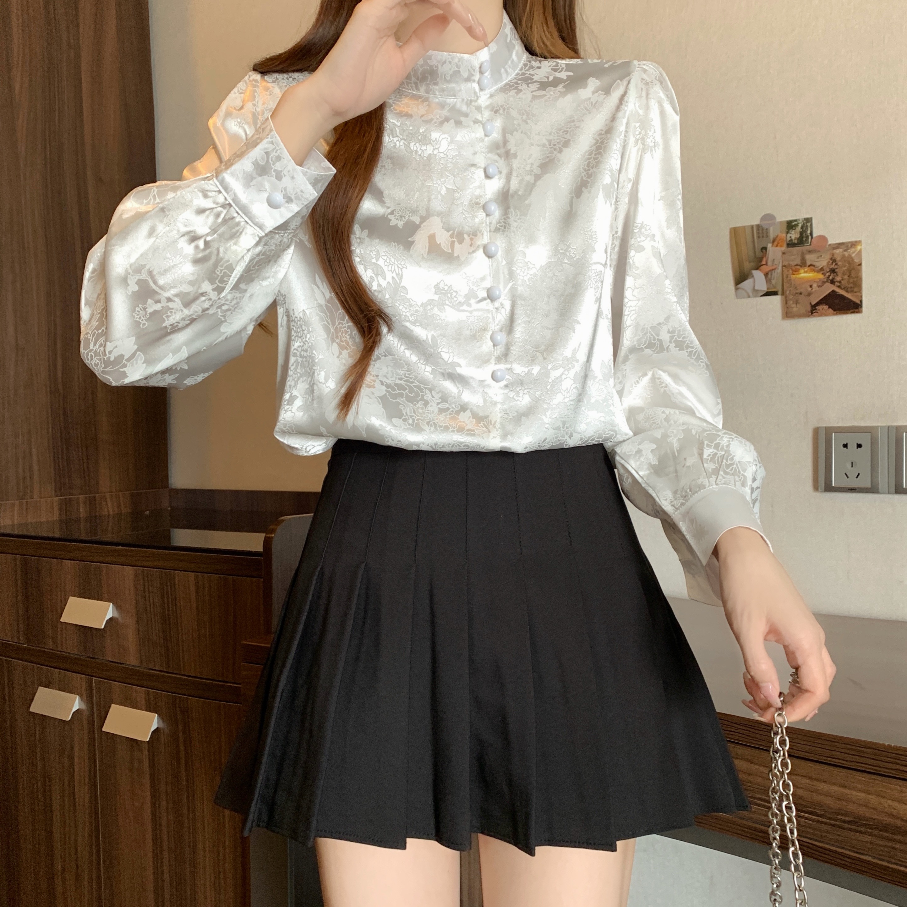 FA53854# 新款大码衬衣.穿搭长袖立领衬衣中式通勤上衣 服裝批發女裝批發服飾貨源