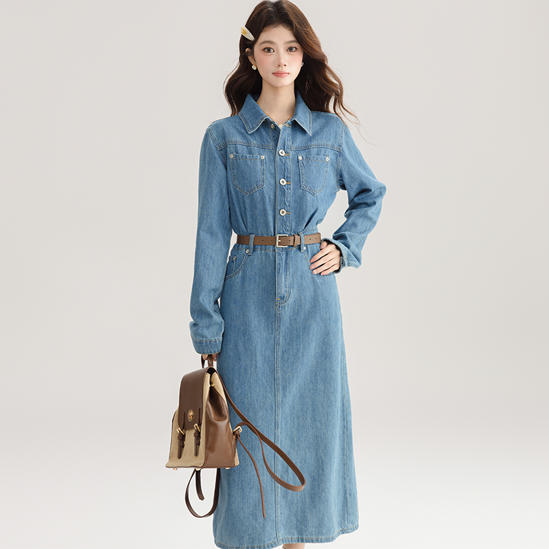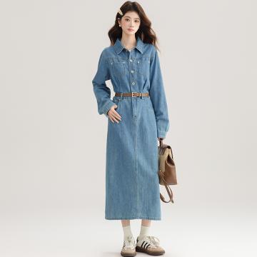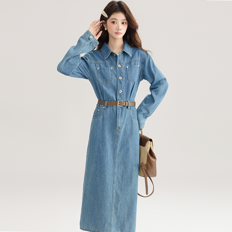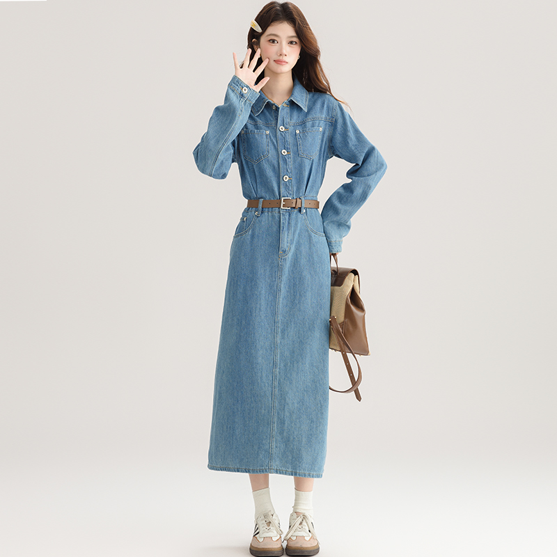 FA54000# 春装新款牛仔裙连衣裙后开叉女直筒裙气质收腰显瘦长裙子 服裝批發女裝批發服飾貨源