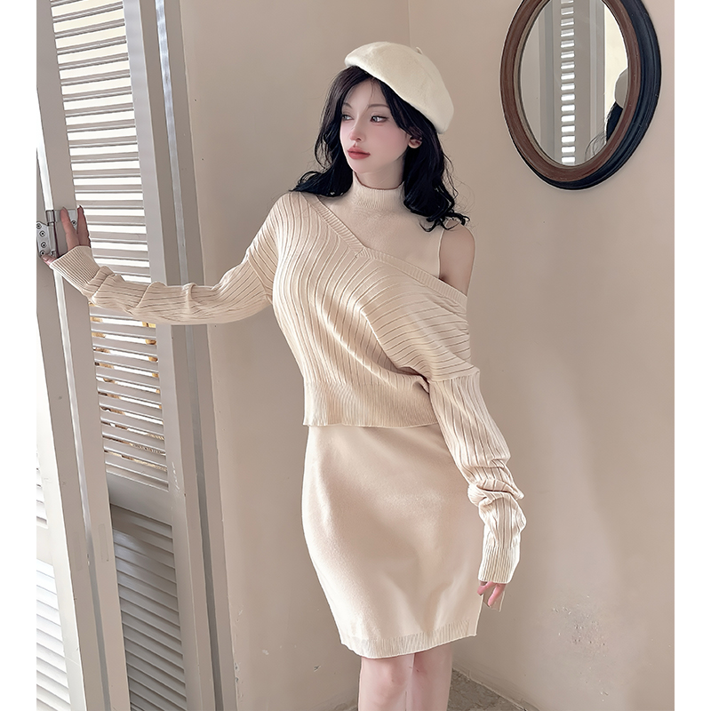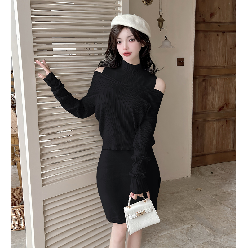 FA54198# 气质减龄针织连衣裙套装女秋季新慵懒风宽松毛衣裙炸街两件套 服裝批發女裝批發服飾貨源