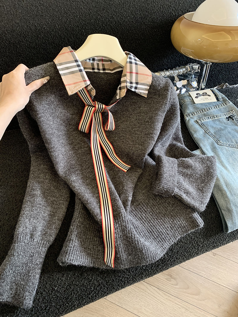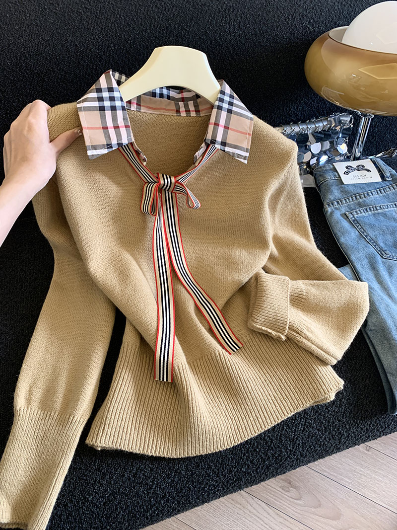 Home > 毛衣、针织衫 > FA54609# 新款时尚百搭显瘦假两件减龄百搭翻领针织衫女宽松洋气毛衣潮 服裝批發女裝批發服飾貨源