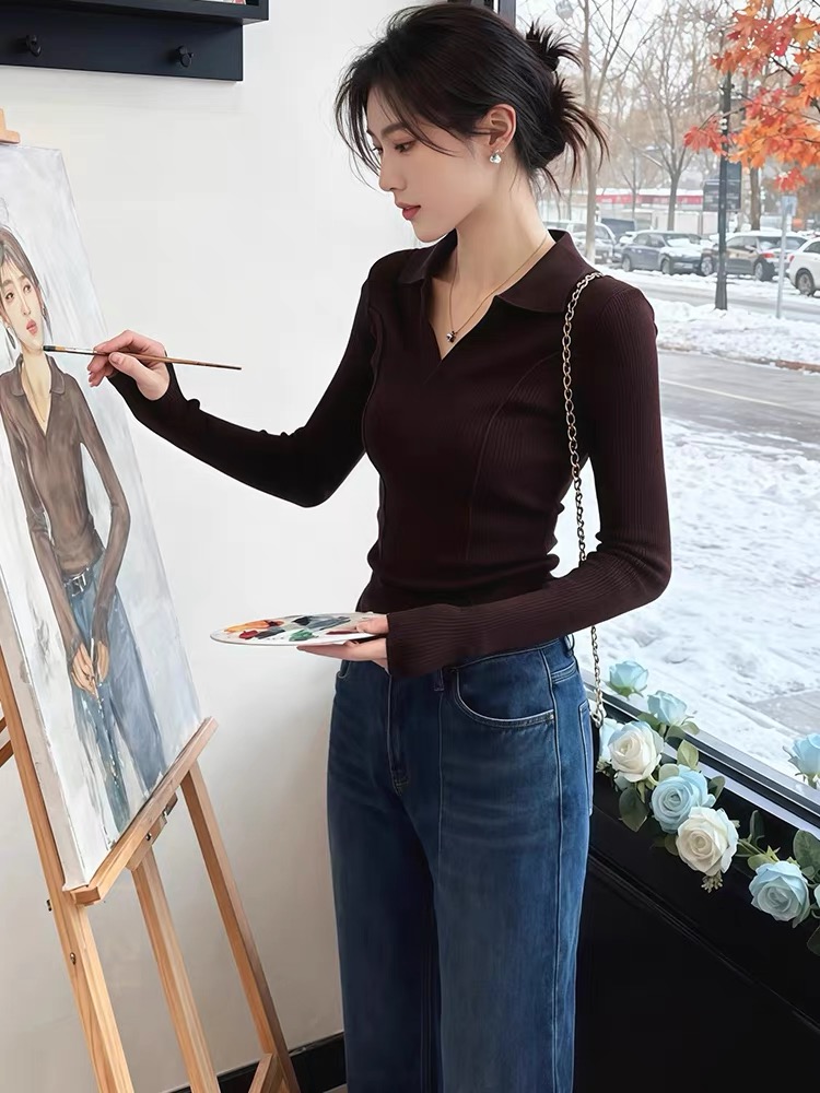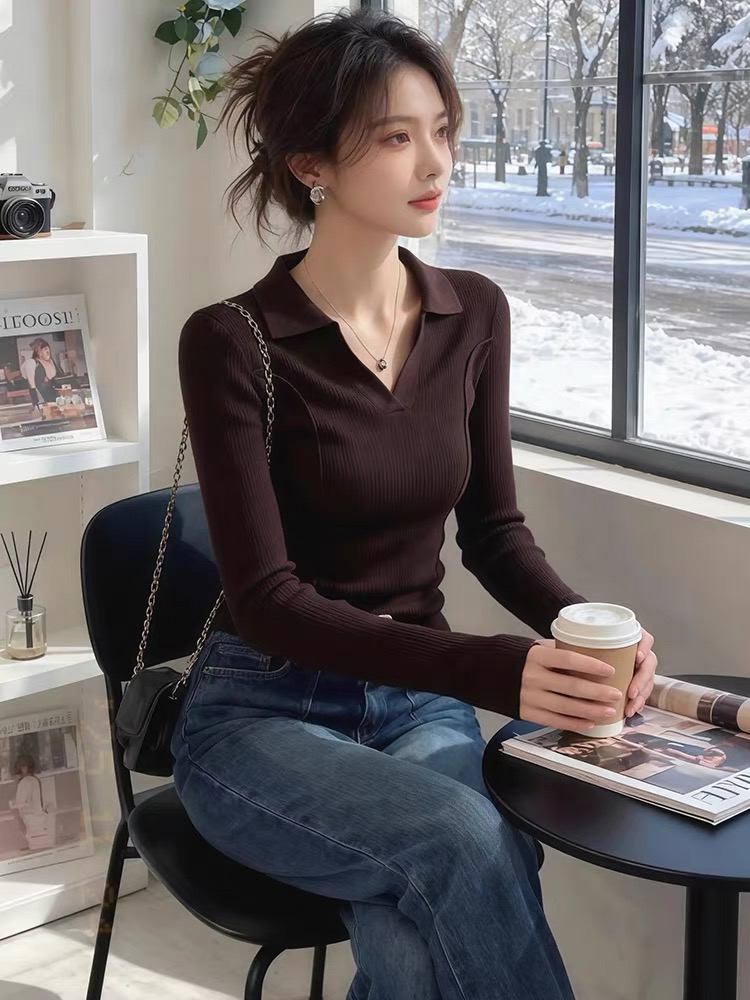 FA54619# 今年流行爆款法式半开领修身显瘦洋气打底衫毛针织衫气质休闲上衣 服裝批發女裝批發服飾貨源