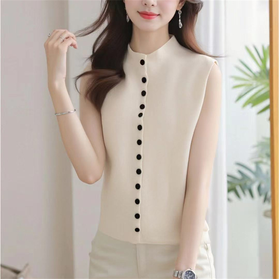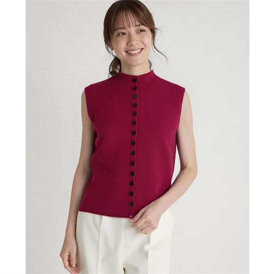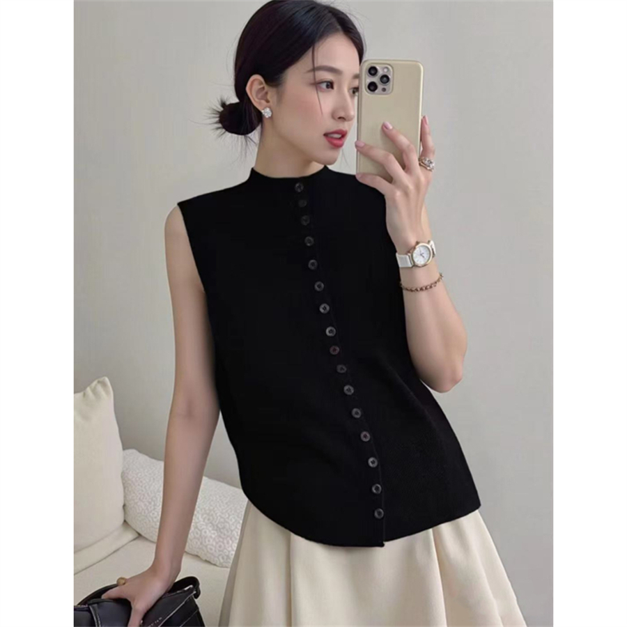FA54641# 春夏新款简约百搭针织开衫马甲背心女设计感排扣无袖上衣 服裝批發女裝批發服飾貨源