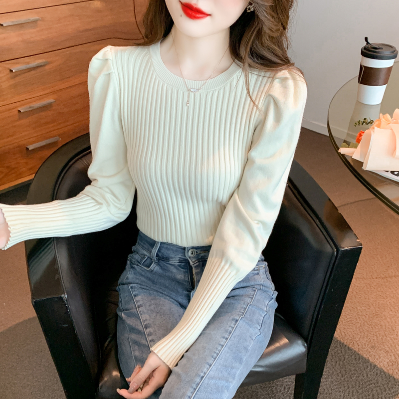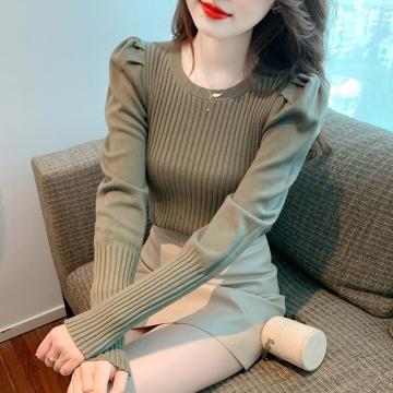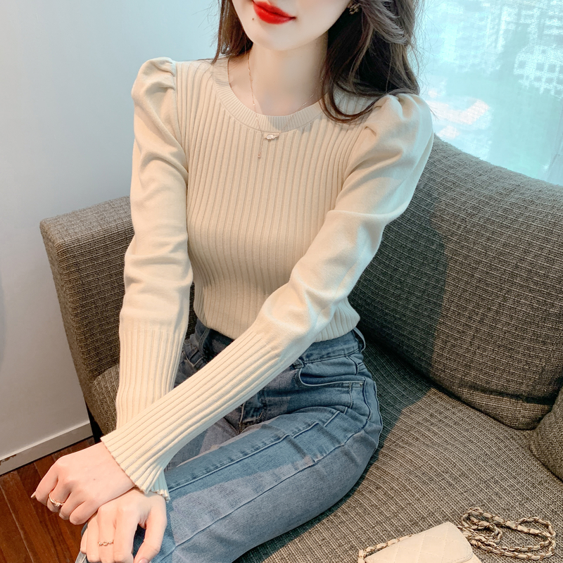 FA54709# 秋冬针织衫毛衣女泡泡袖纯色打底衫针织上衣 服裝批發女裝批發服飾貨源