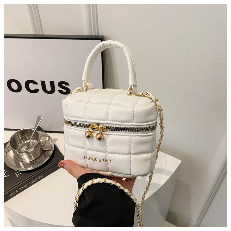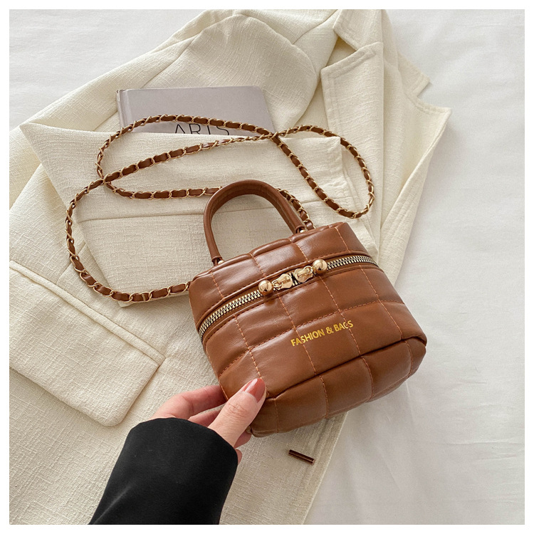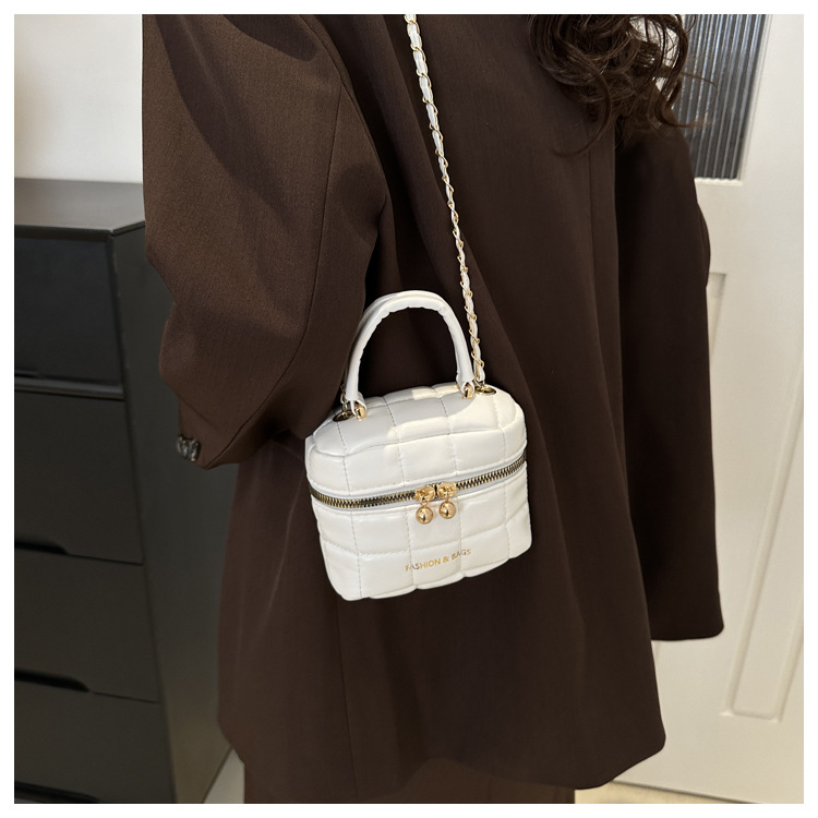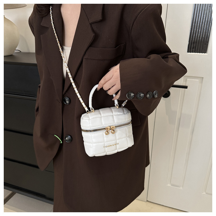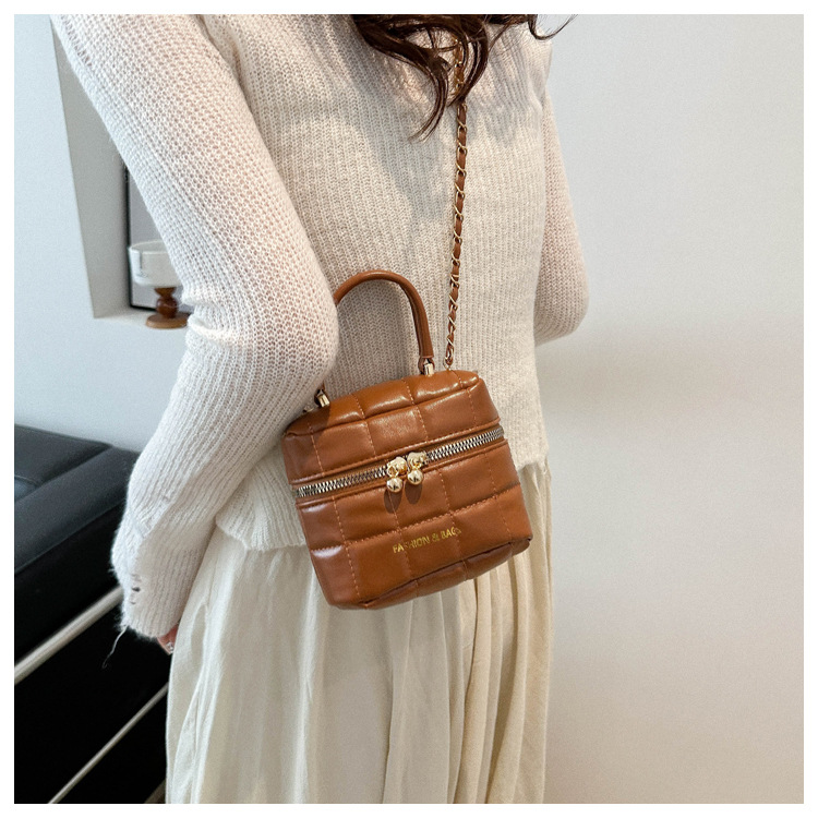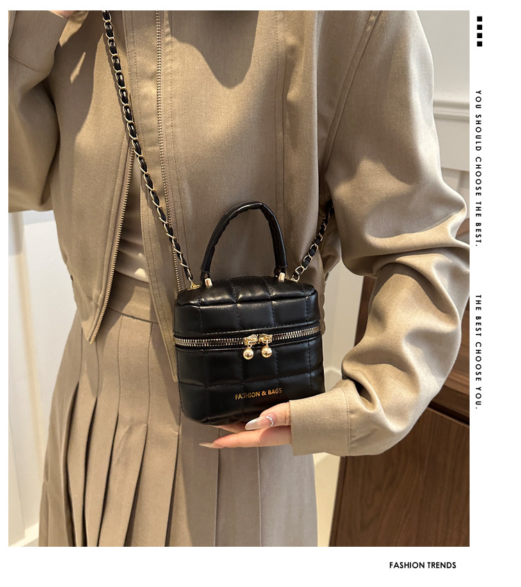 TJ2243# 韩版时尚菱格绣线水桶包包女2024新款小香风手提包通勤单肩斜挎包