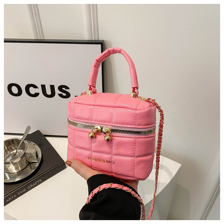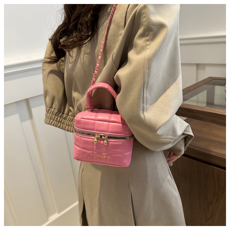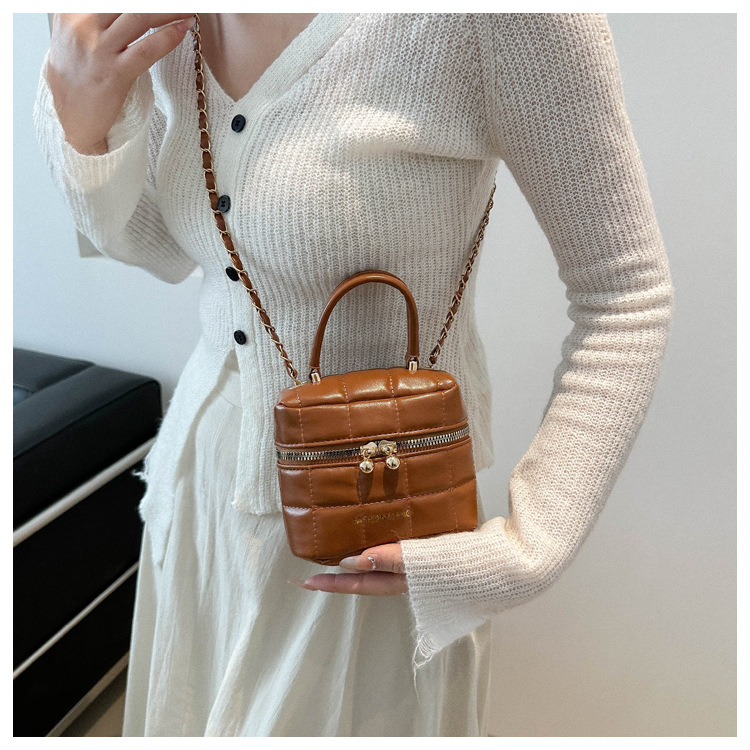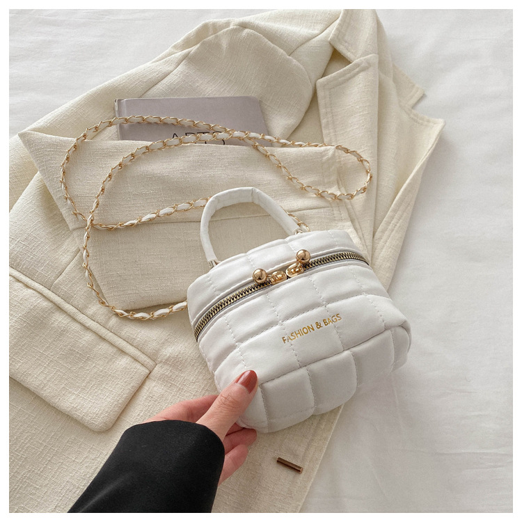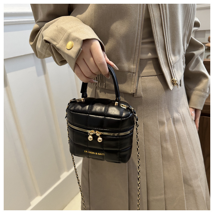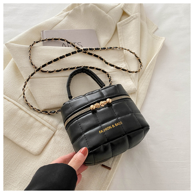 TJ2243# 韩版时尚菱格绣线水桶包包女2024新款小香风手提包通勤单肩斜挎包