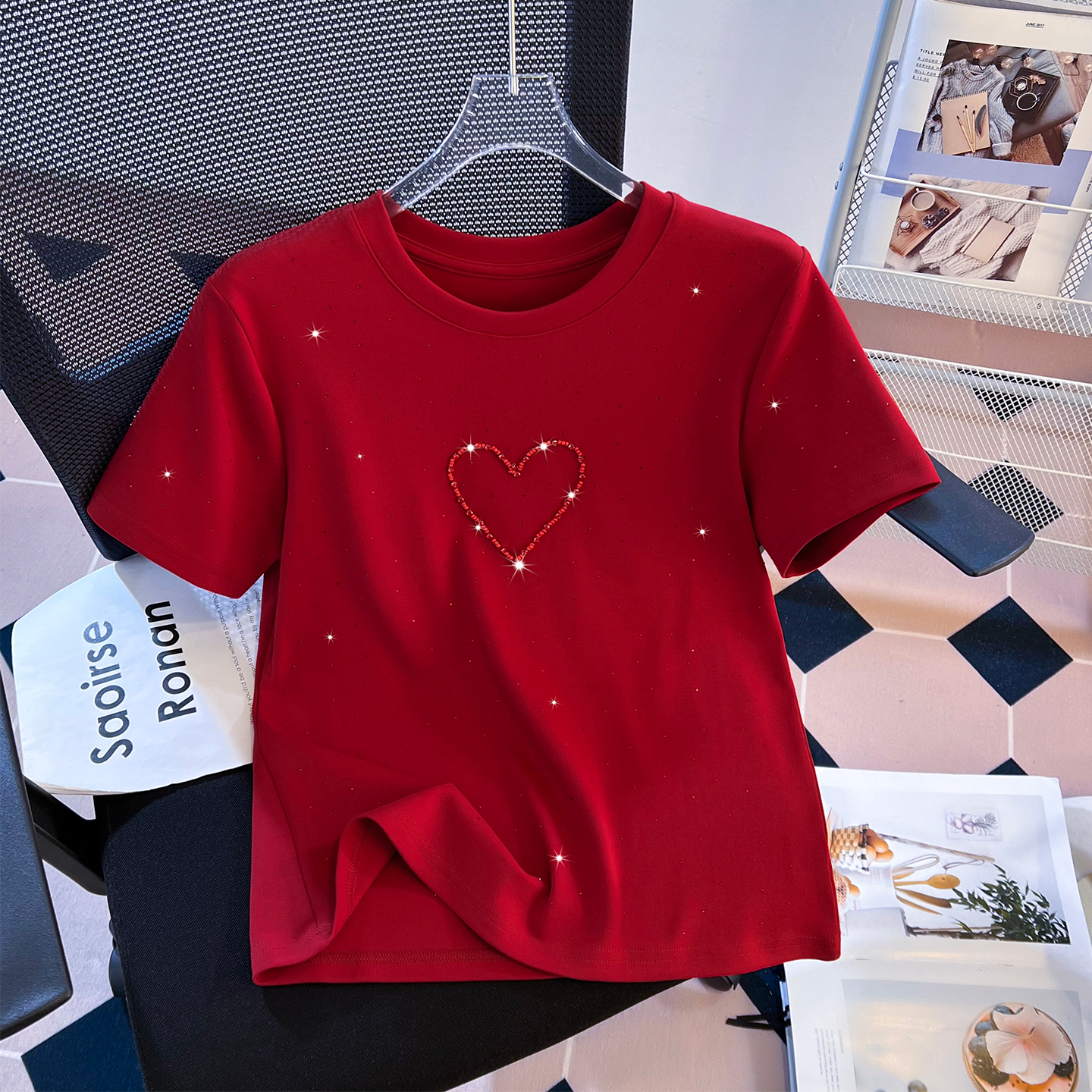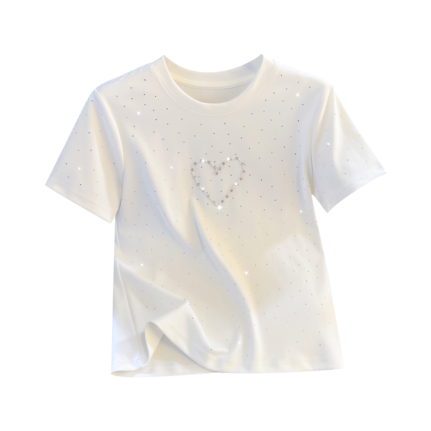 FA55147# 春季新款加厚纯棉重工穿珠爱心修身时尚短袖T恤女 服裝批發女裝批發服飾貨源