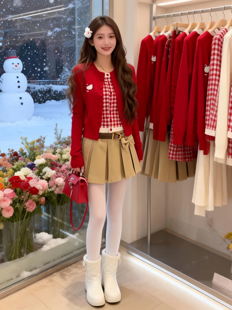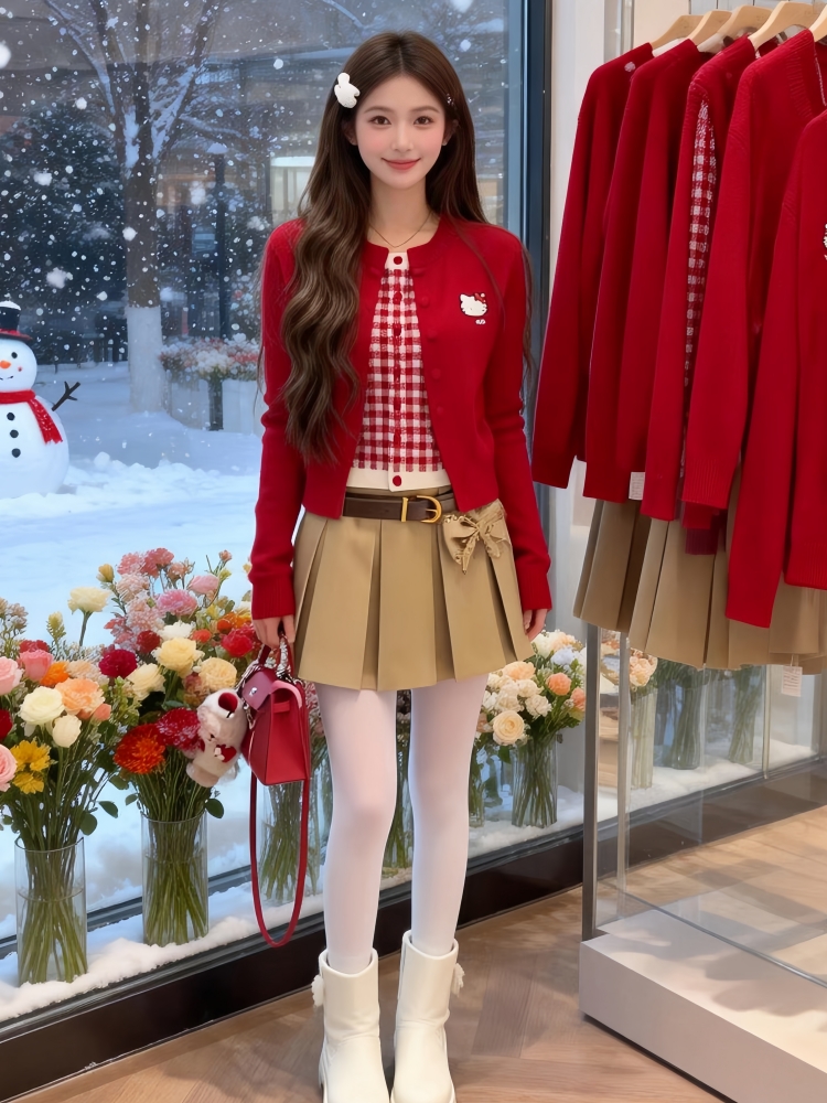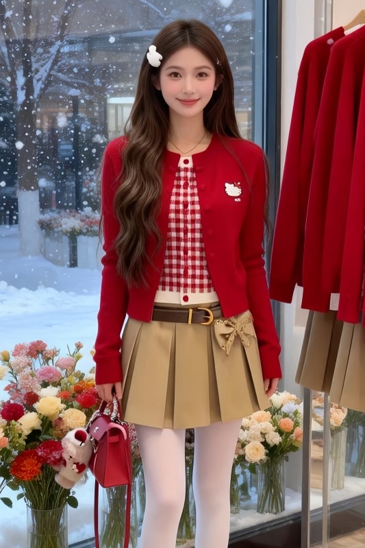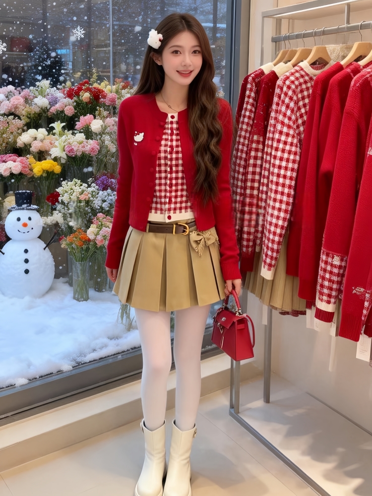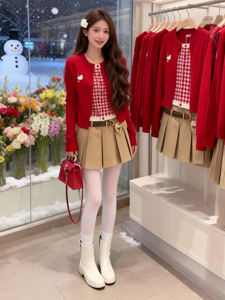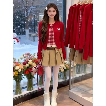 FA55305# 氛围感红色假两件针织开衫女冬季上衣巨好看时尚洋气百搭毛衣 服裝批發女裝批發服飾貨源