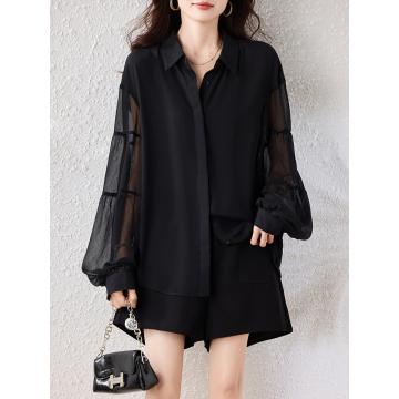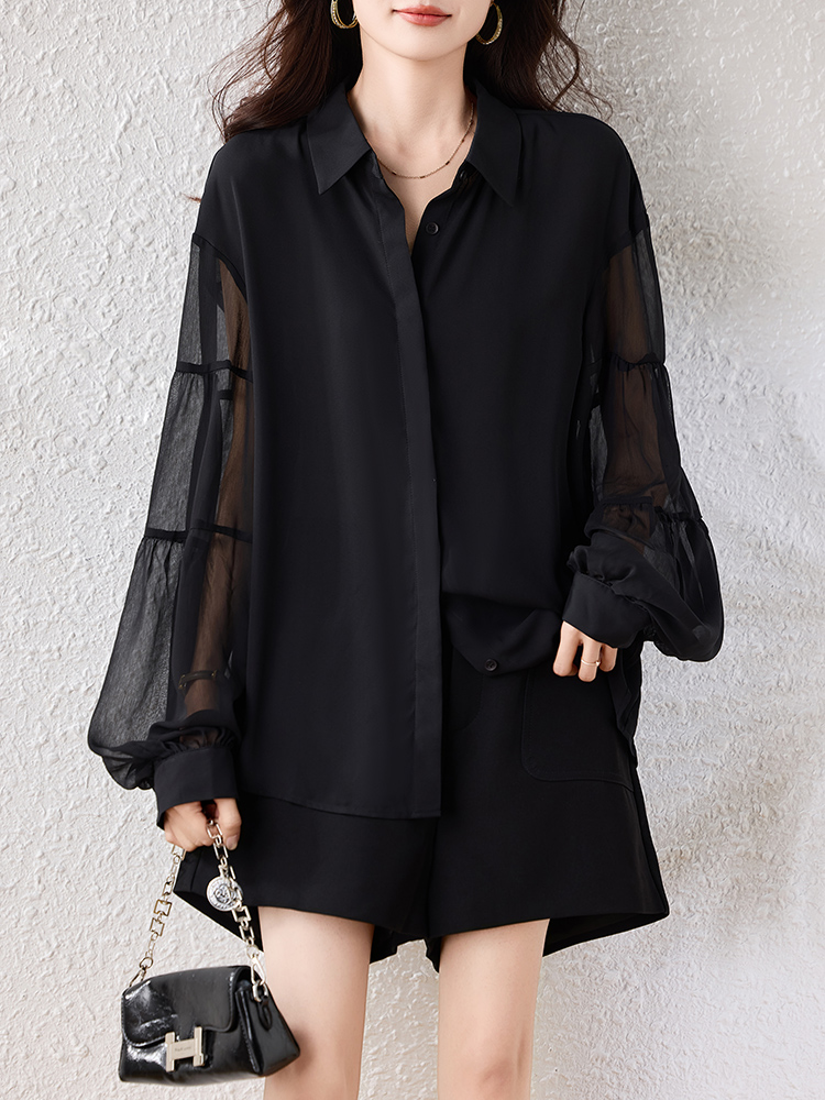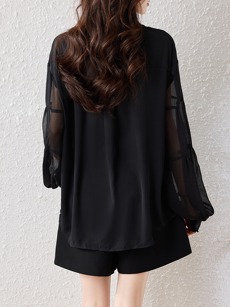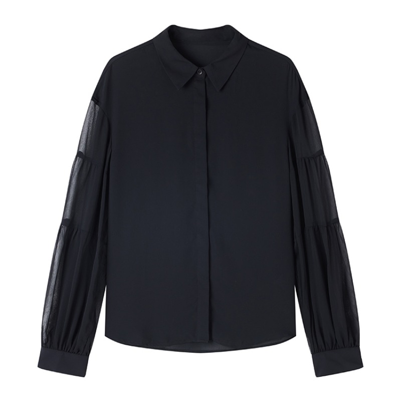 Home > 长袖雪纺衫、衬衫、上衣 > FA55355# 黑色衬衫女轻奢高级感减龄洋气灯笼袖上衣春季新款上衣 服裝批發女裝批發服飾貨源
