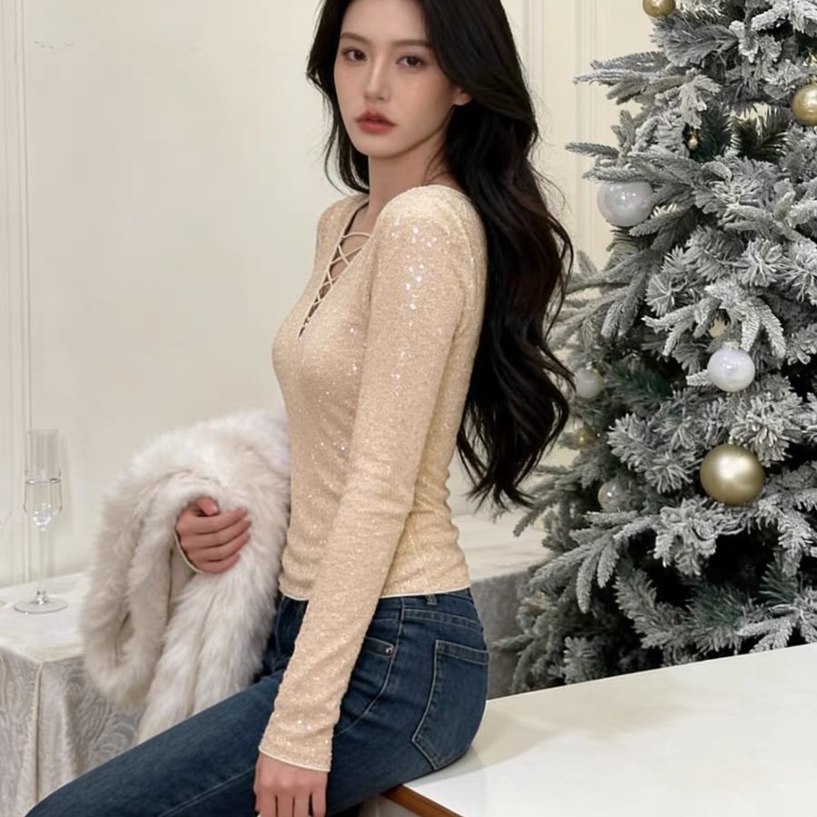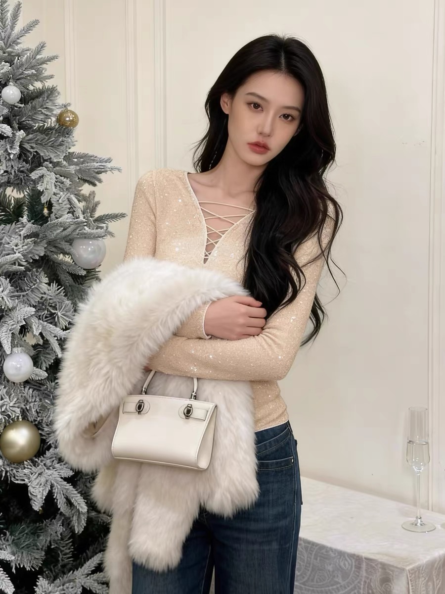 FA55378# 秋冬超好看的绝美亮闪闪上衣女早春新款内搭打底衫设计感小众 服裝批發女裝批發服飾貨源