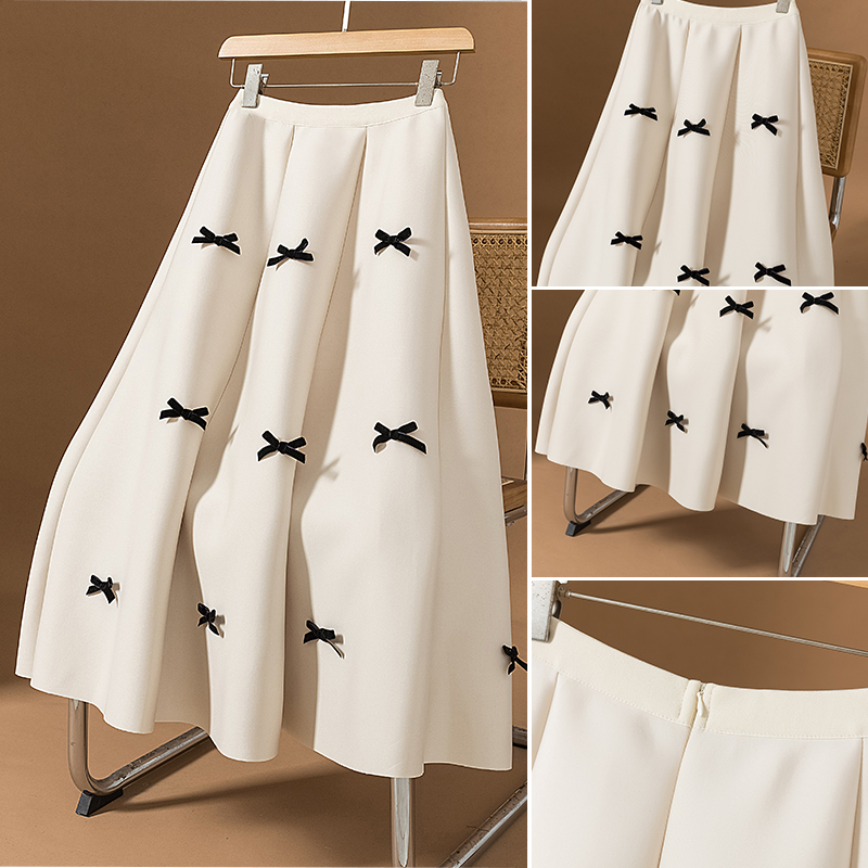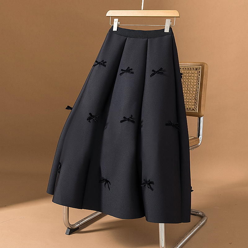 FA55528# 大码女装新款韩版复古蝴蝶结高腰春季宽松垂感a字蛋糕半身裙 服裝批發女裝批發服飾貨源