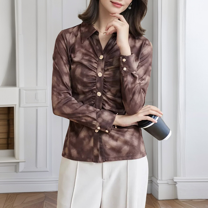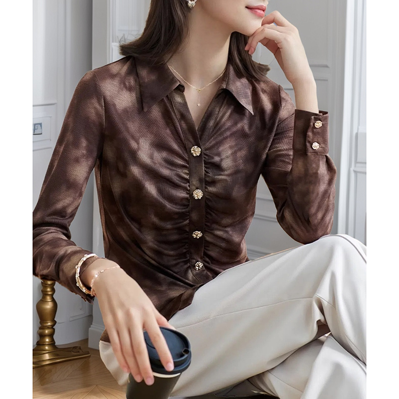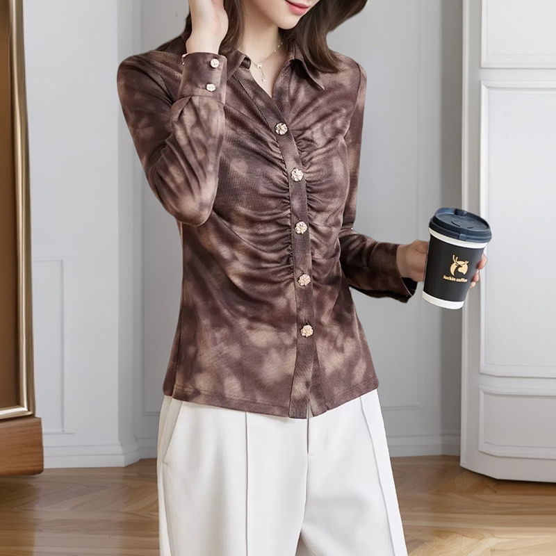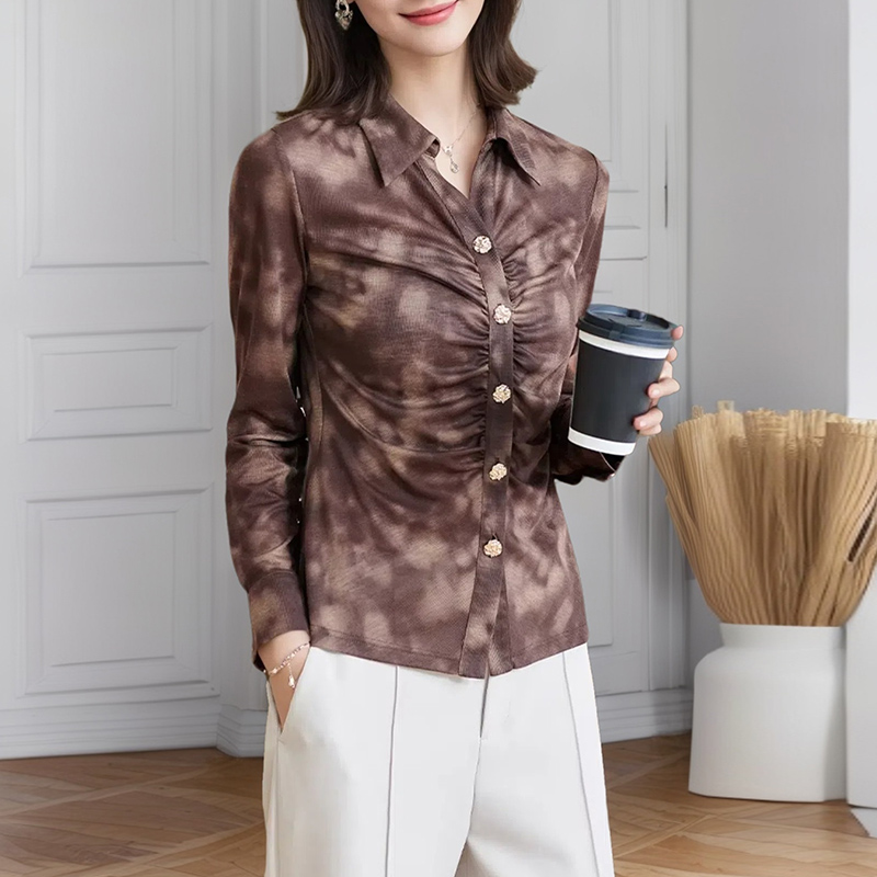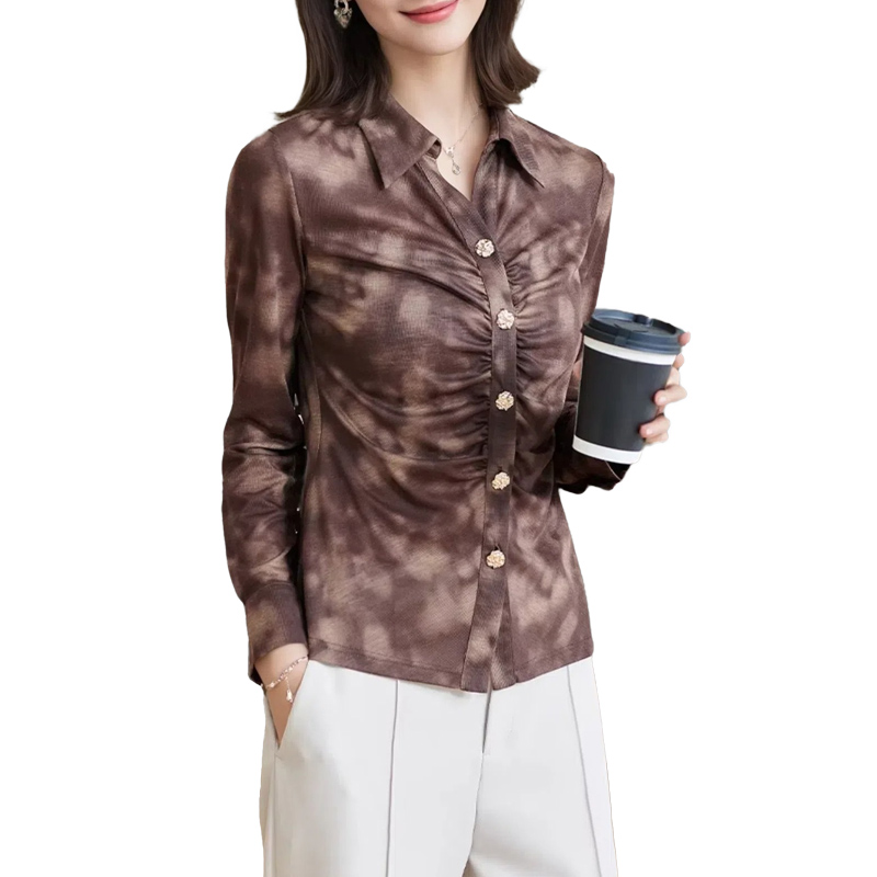 FA55691# 春新款扎染设计感褶皱单排扣韩版上衣长袖别致开衫 服裝批發女裝批發服飾貨源