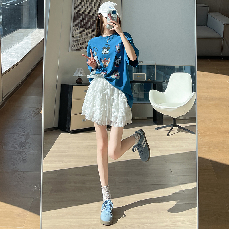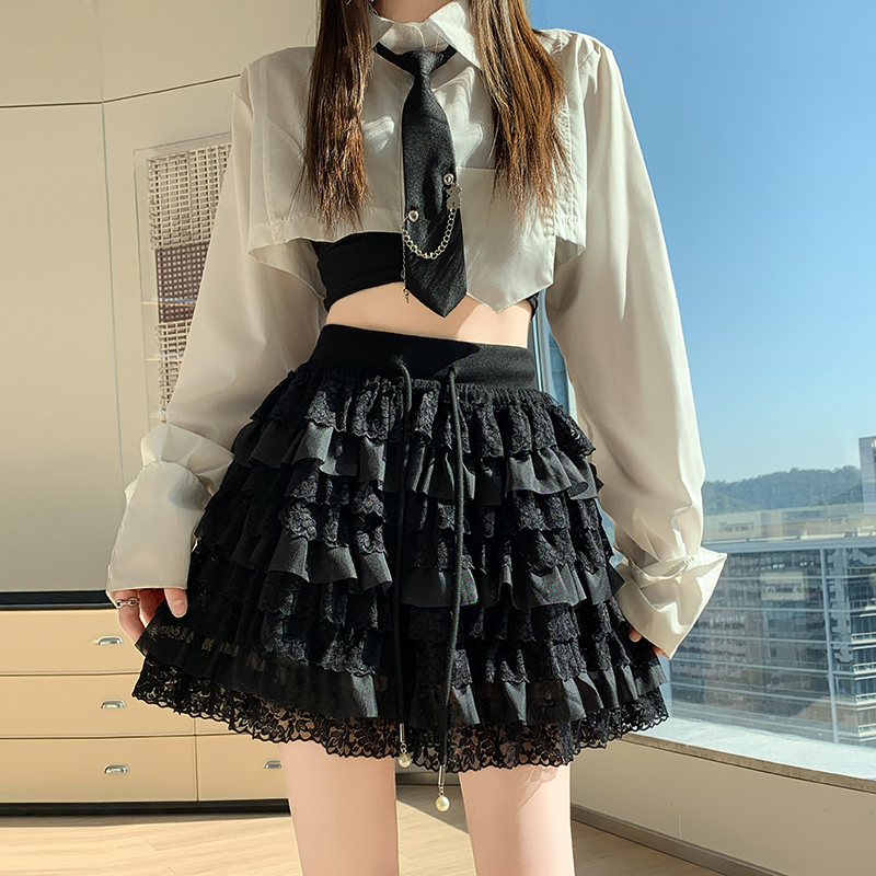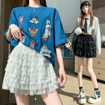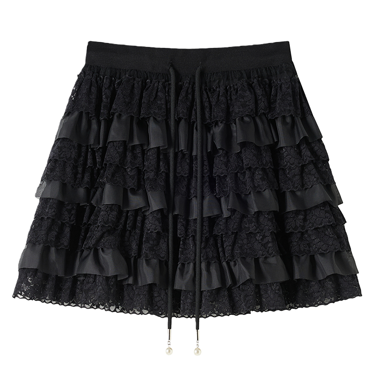 FA55791# 春季新款韩版松紧腰抽绳蕾丝花边蛋糕裙百搭半身裙防走光 服裝批發女裝批發服飾貨源