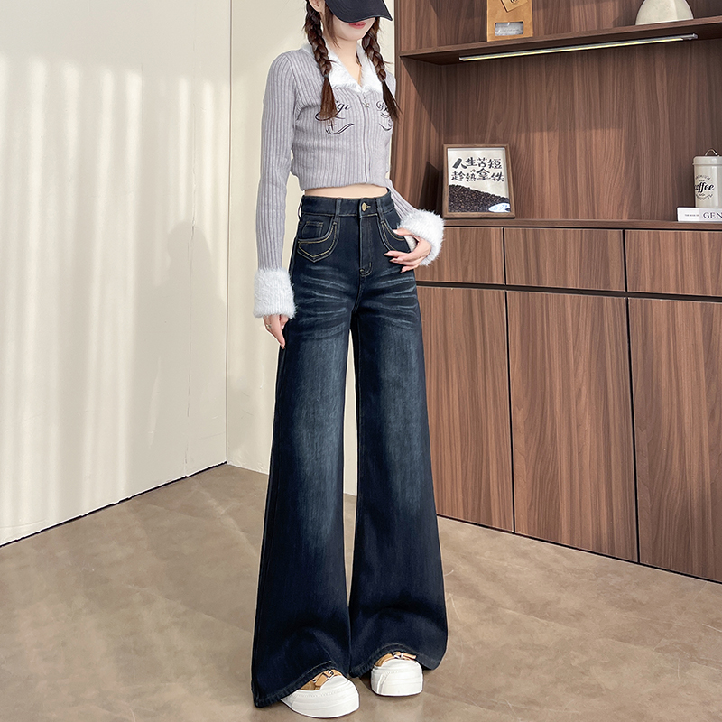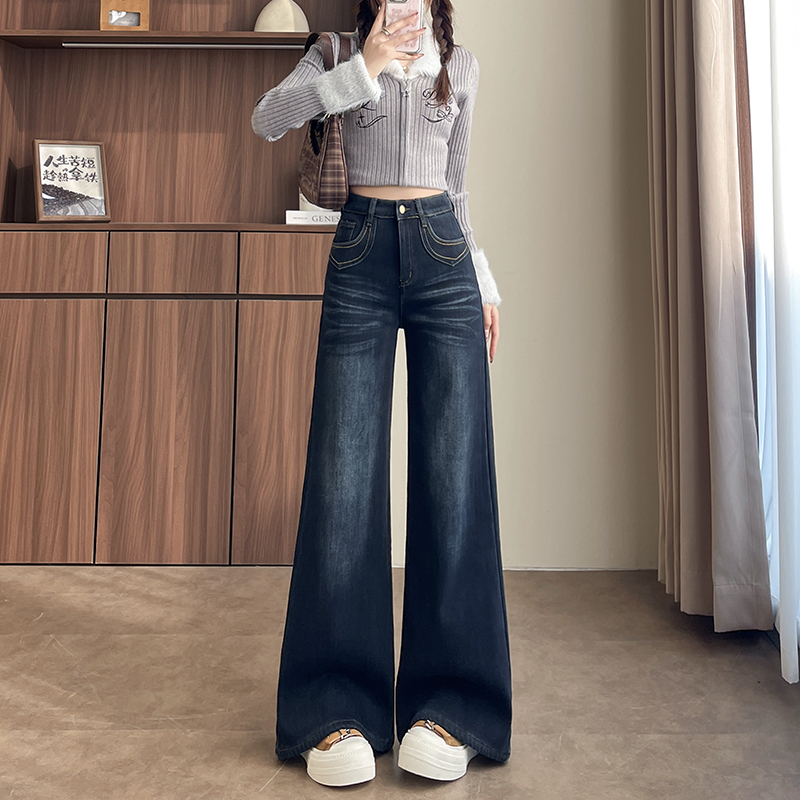 复古蓝长裤