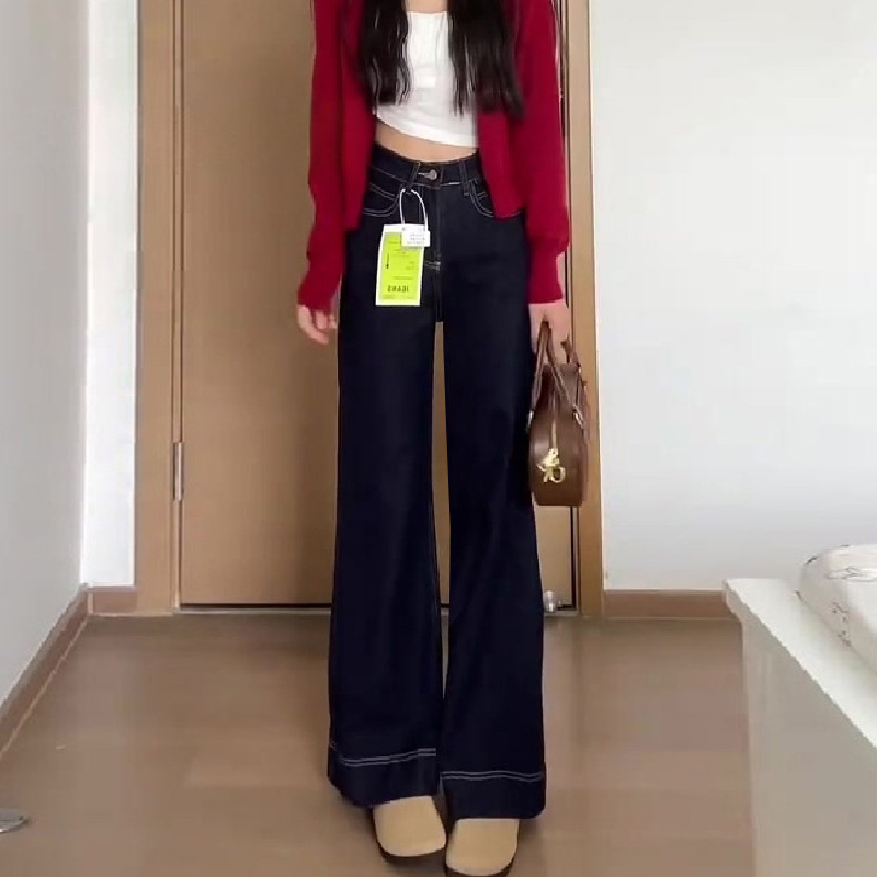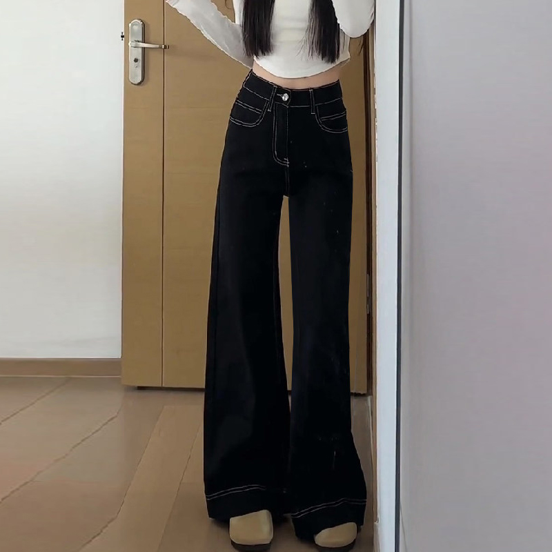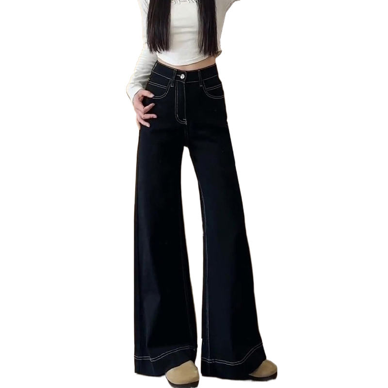 FA56507# 韩版黑色高腰百搭牛仔裤女春季新款大码胖mm宽松显瘦直筒阔腿长裤 服裝批發女裝批發服飾貨源