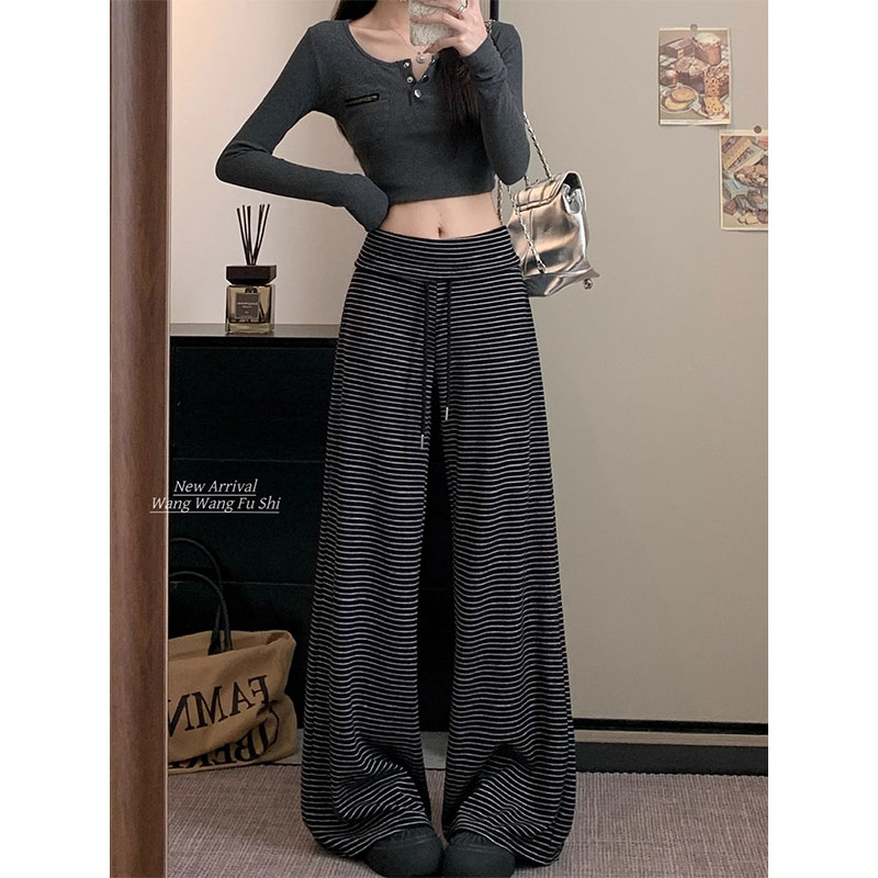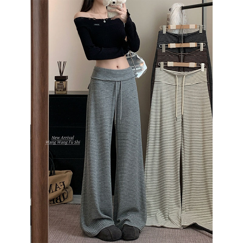 Home > 牛仔裤、长裤 > BY10128# 原版品质高腰直筒裤慵懒风条纹休闲裤女秋季百搭宽松阔腿裤 服裝批發女裝批發服飾貨源