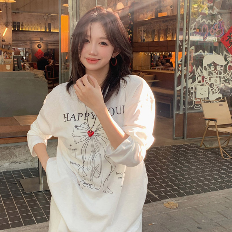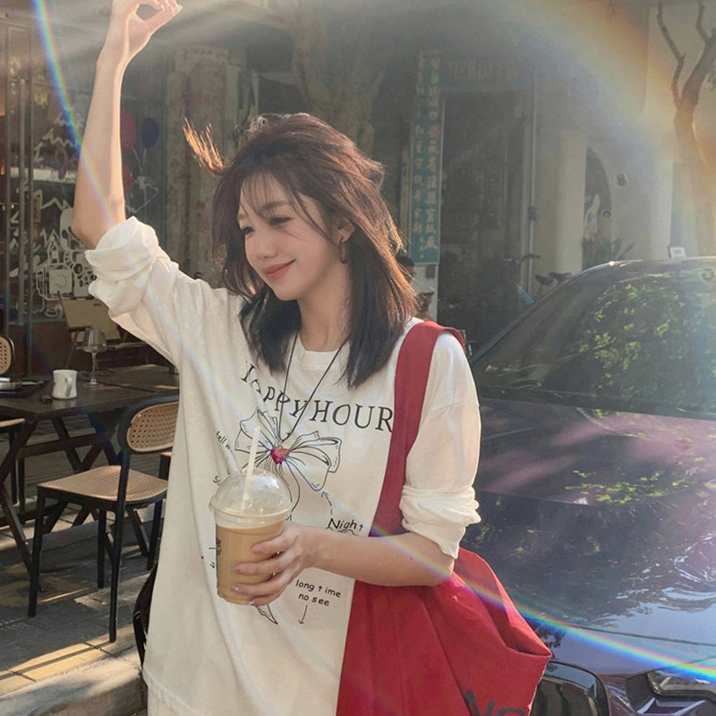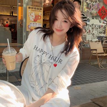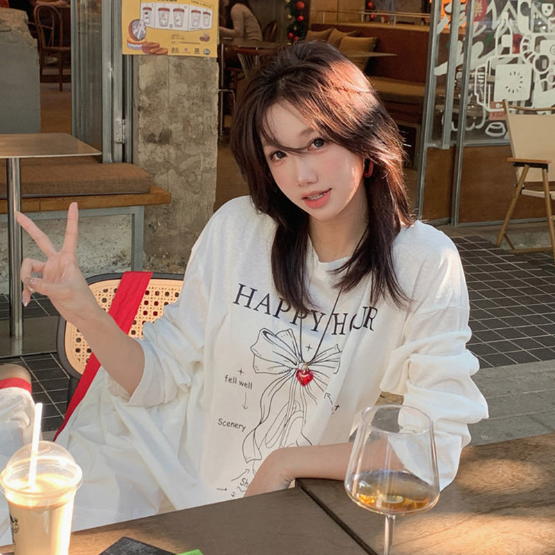 BY10130# 原版面料休闲长袖T恤女春秋轻薄罩衫慵懒宽松减龄上衣 服裝批發女裝批發服飾貨源