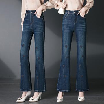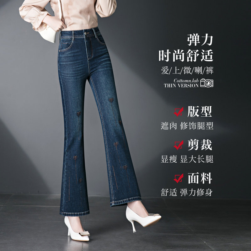 BY10242# 微喇牛仔裤女春秋新款宽松喇叭裤高腰显瘦蓝色裤子 服裝批發女裝批發服飾貨源