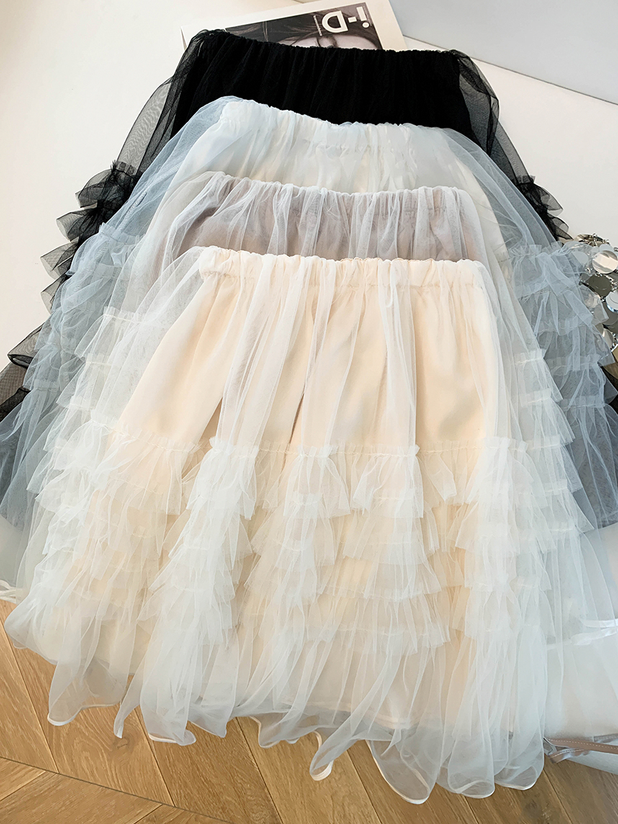 Home > 短裤、半身裙 > BY10453# 层次感网纱木耳拼接半身裙女春夏新款韩版气质蓬蓬蛋糕裙中裙 服裝批發女裝批發服飾貨源
