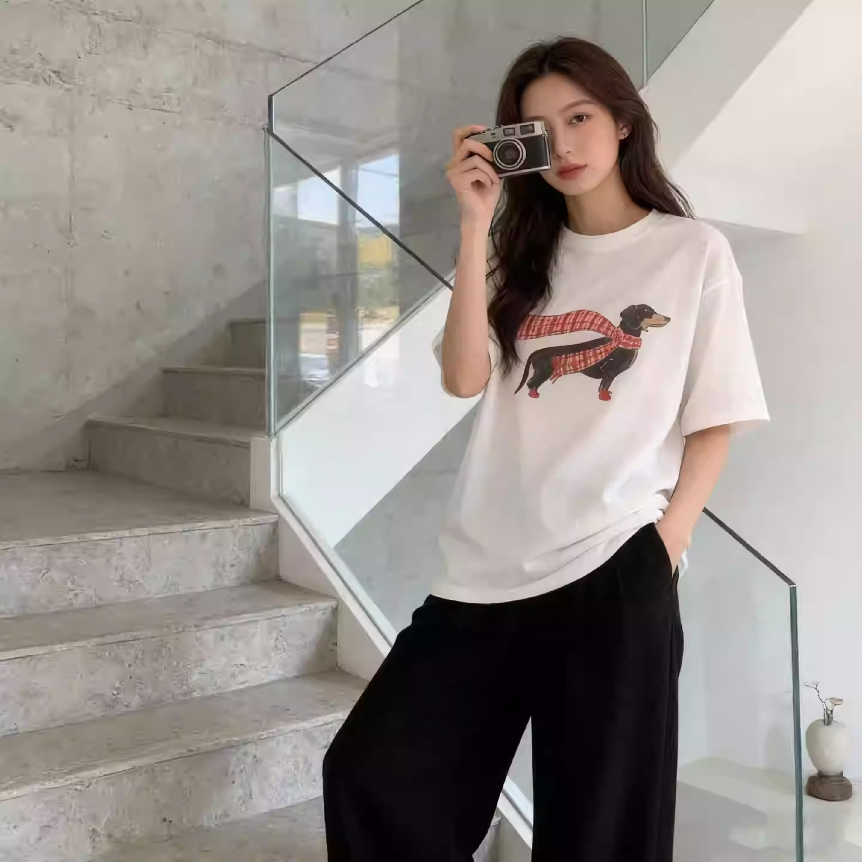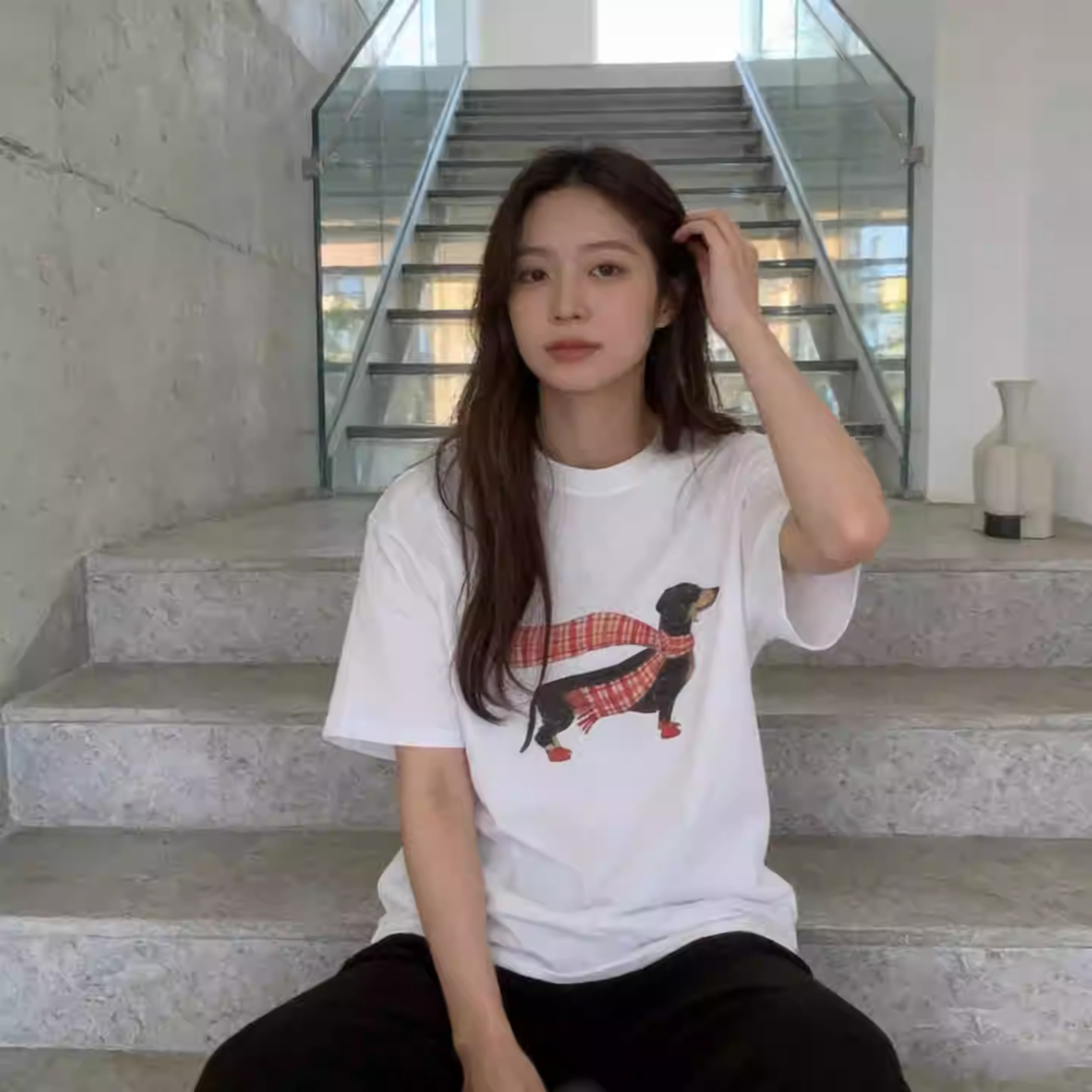 BY12318# 韩系纯棉夏季新款bm港味宽松百搭上衣chic卡通印花短袖T恤女 服裝批發女裝批發服飾貨源