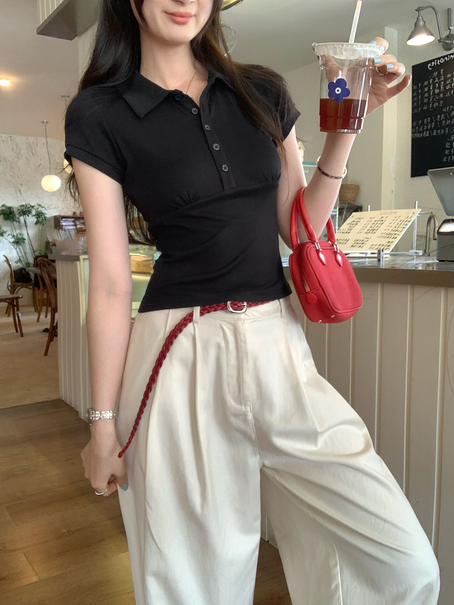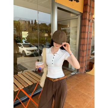 BY12326# 图超火减龄POLO领正肩短袖T恤女夏季新款辣妹修身短款上衣 服裝批發女裝批發服飾貨源