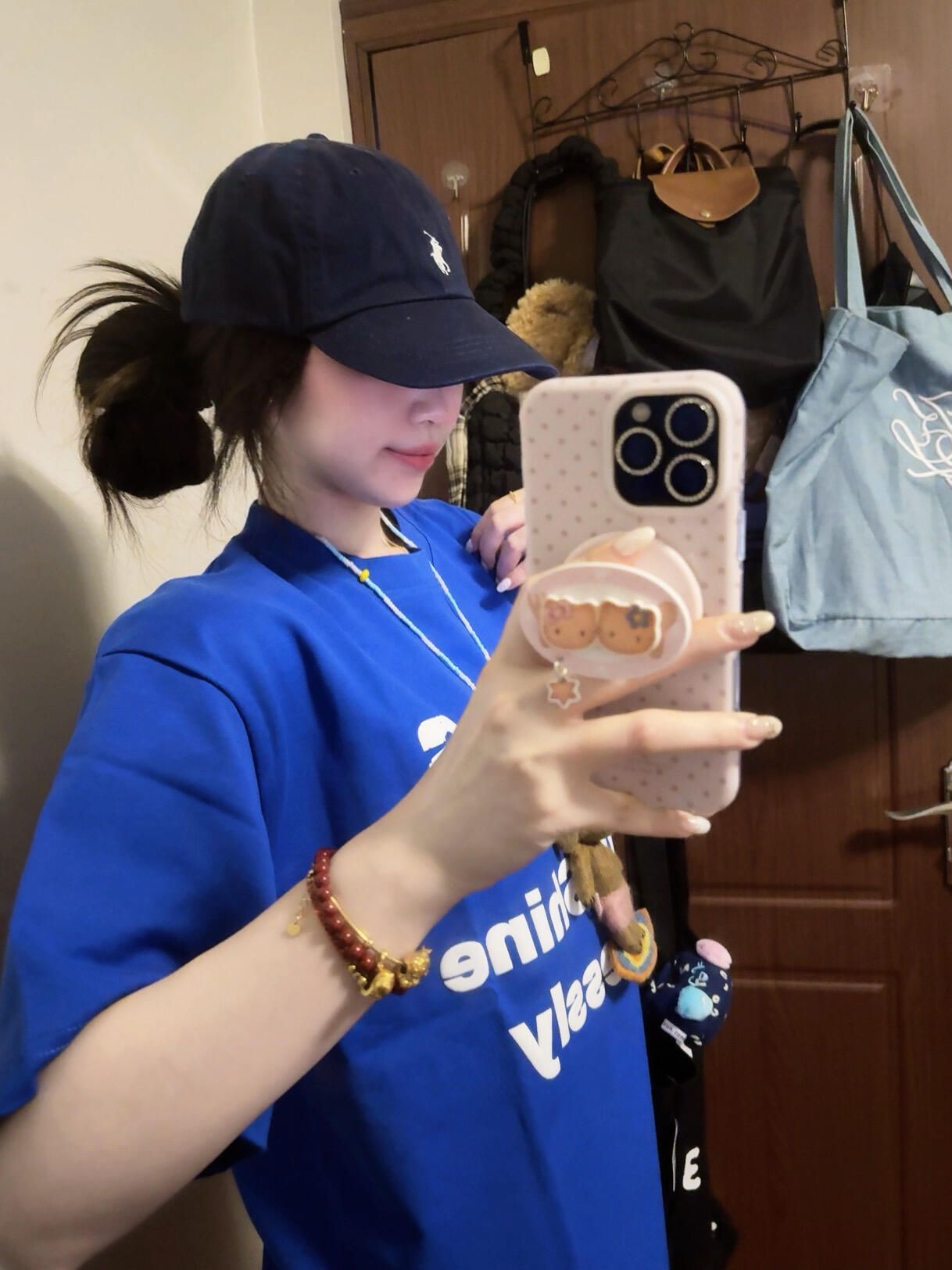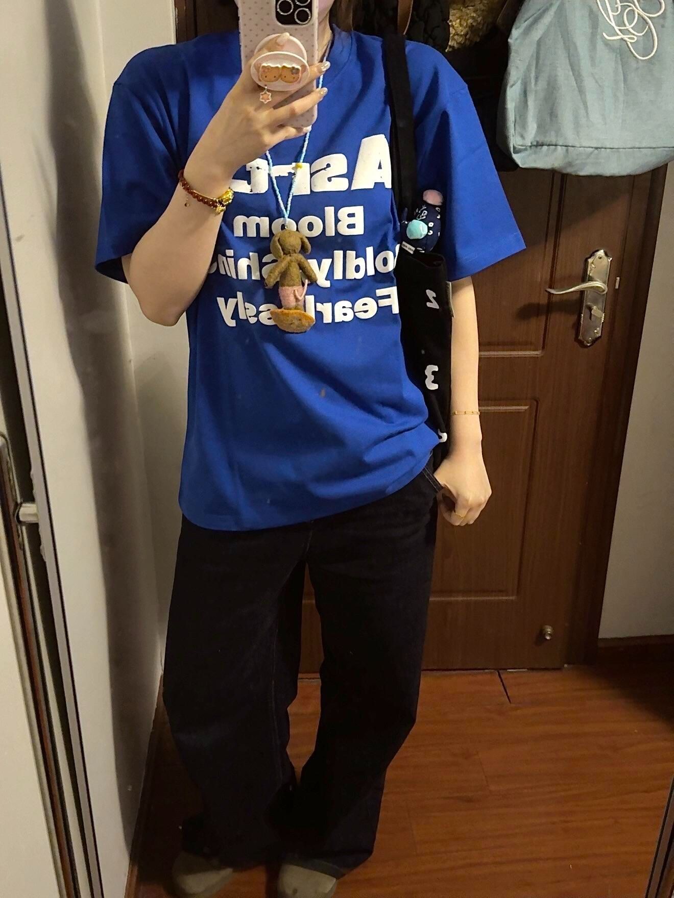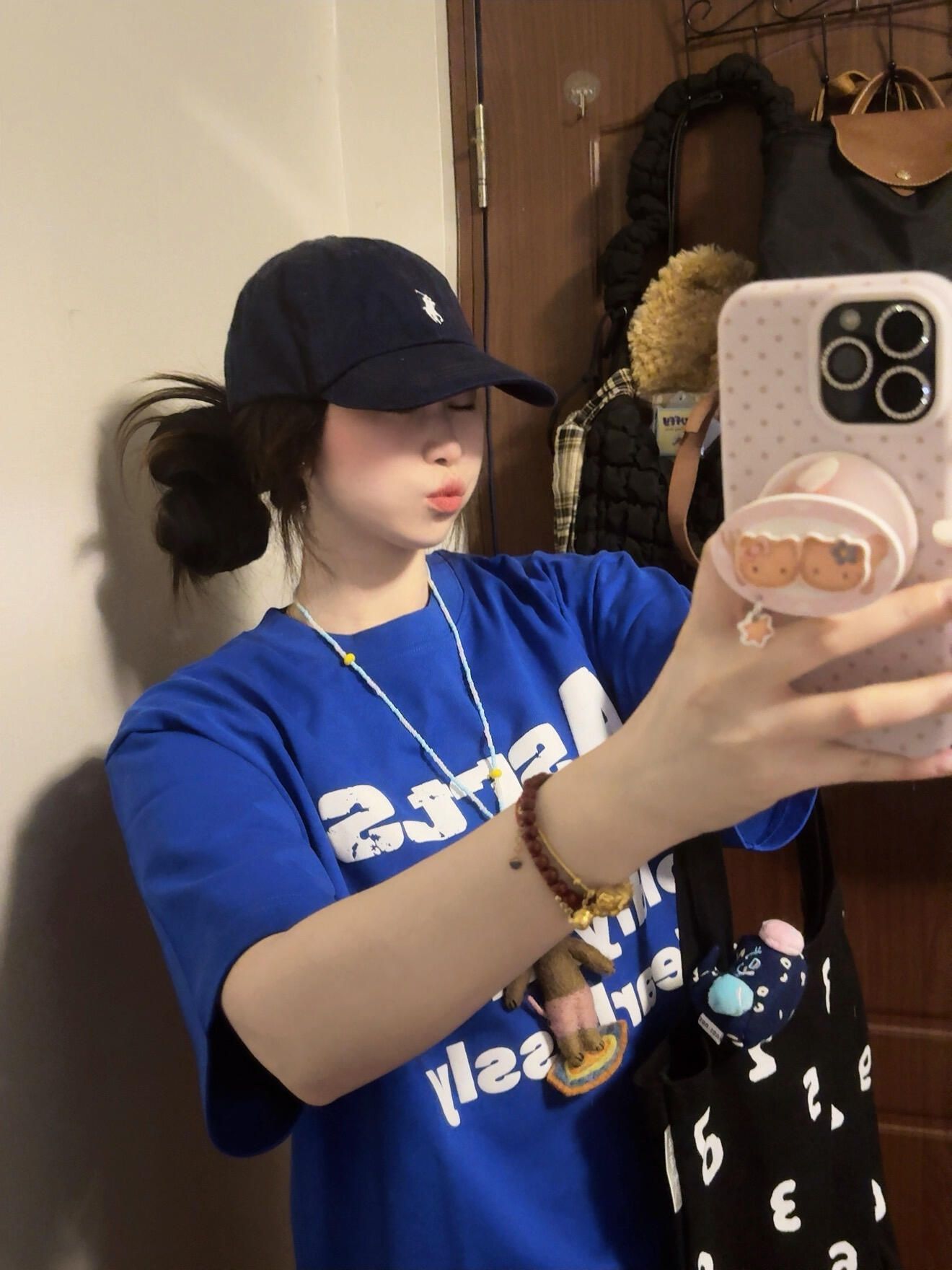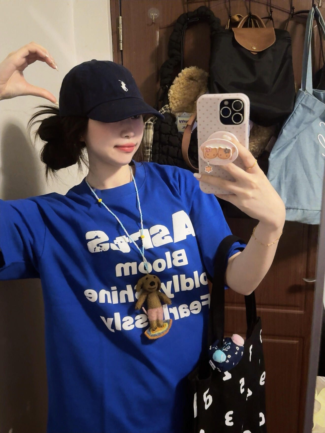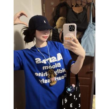 BY12363# 新款情侣潮牌克莱因蓝短袖女美式宽松T恤女半袖上衣高级感 服裝批發女裝批發服飾貨源