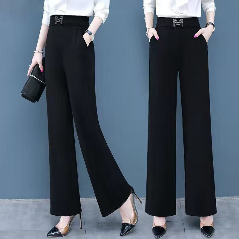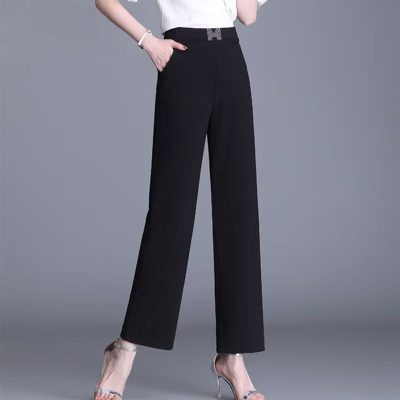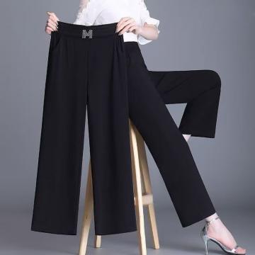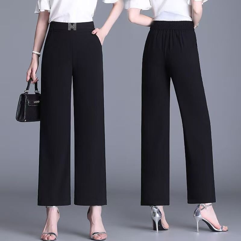 BY12639# 休闲直筒裤女夏季薄款胖mm阔腿裤高腰九分裤子女大码遮肉显瘦透气 服裝批發女裝批發服飾貨源