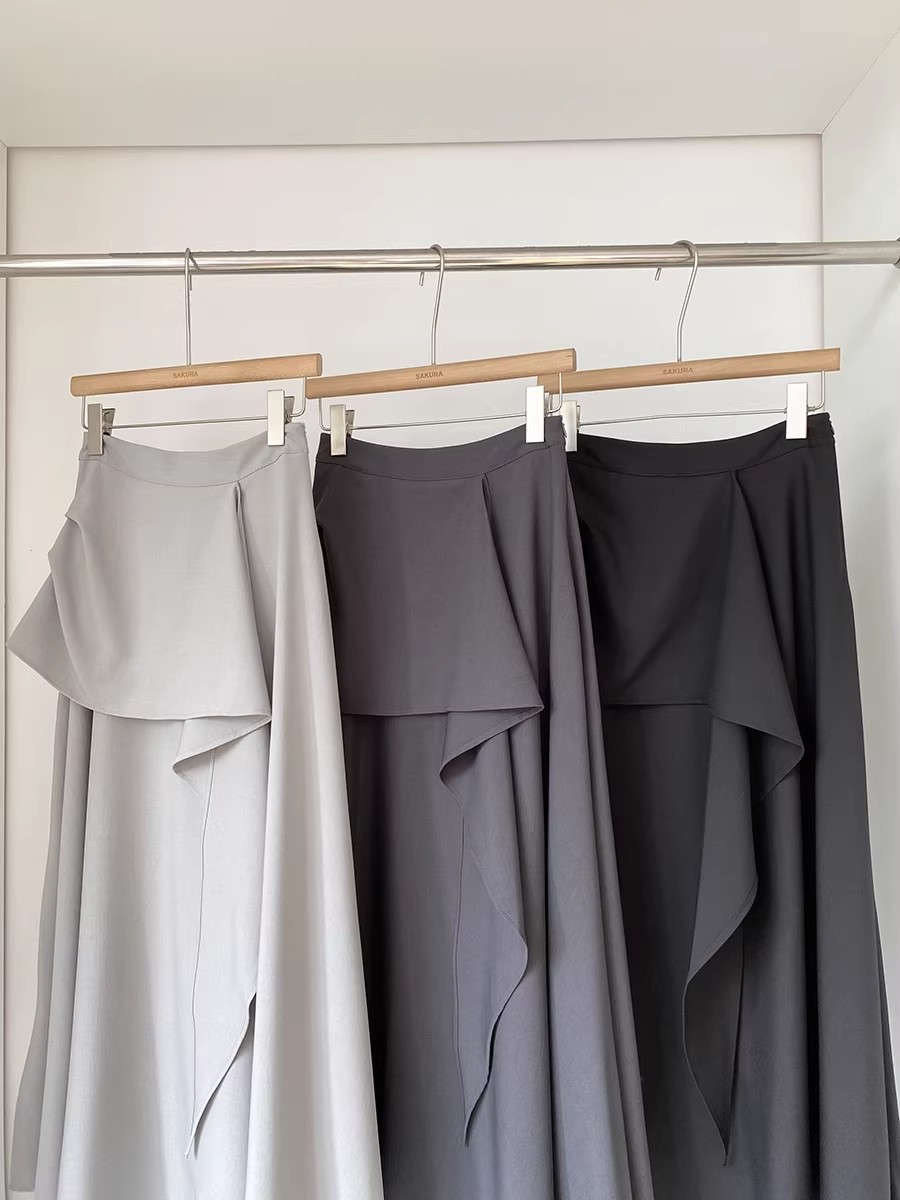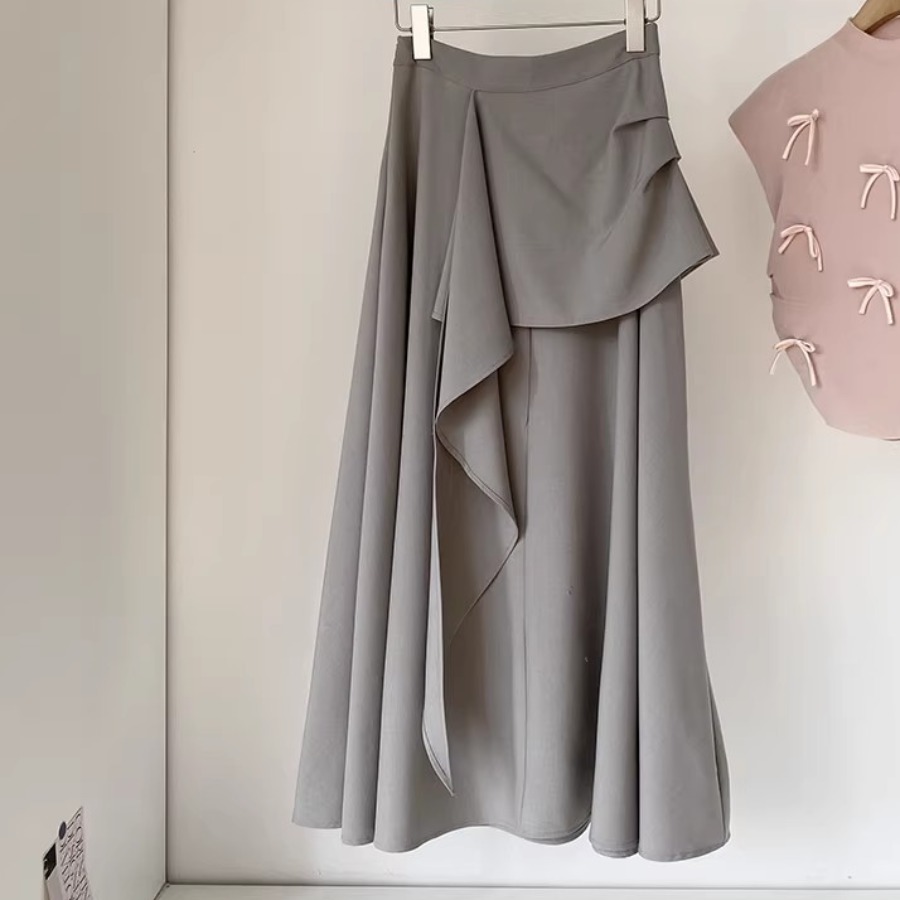 BY12721# 夏季新款法式百搭不规则高级感气质半身裙休闲时尚中长裙女 服裝批發女裝批發服飾貨源