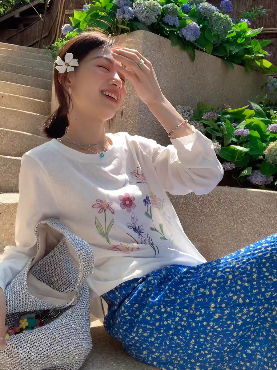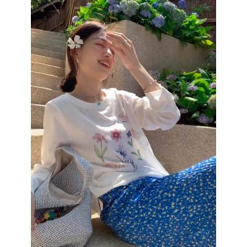 BY13200# 防晒罩衫女薄款夏日印花宽松长袖t恤上衣 服裝批發女裝批發服飾貨源
