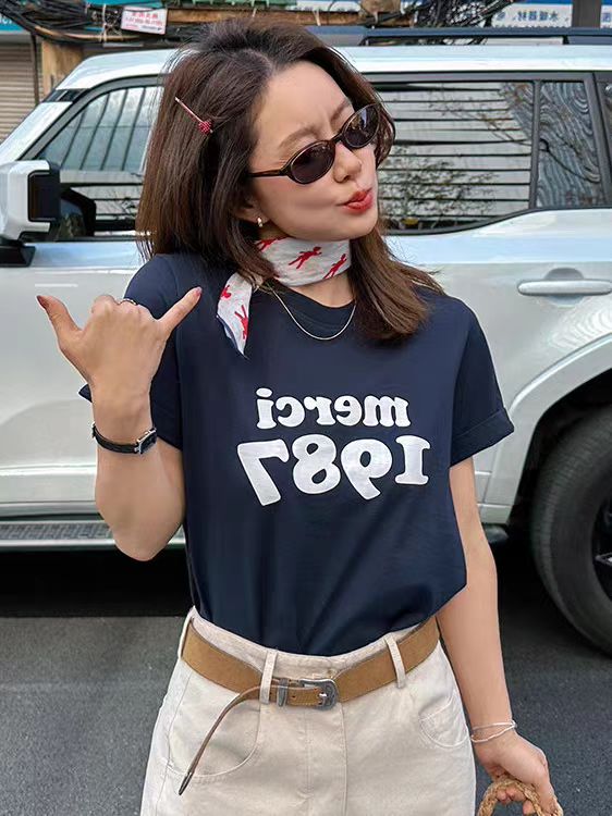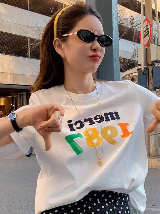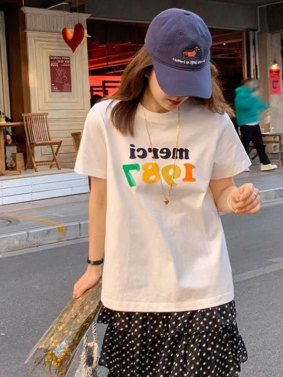 Home > 短袖T恤 > BY13202# 短袖t恤女夏季新款韩版宽松圆领休闲正肩印花上衣 服裝批發女裝批發服飾貨源