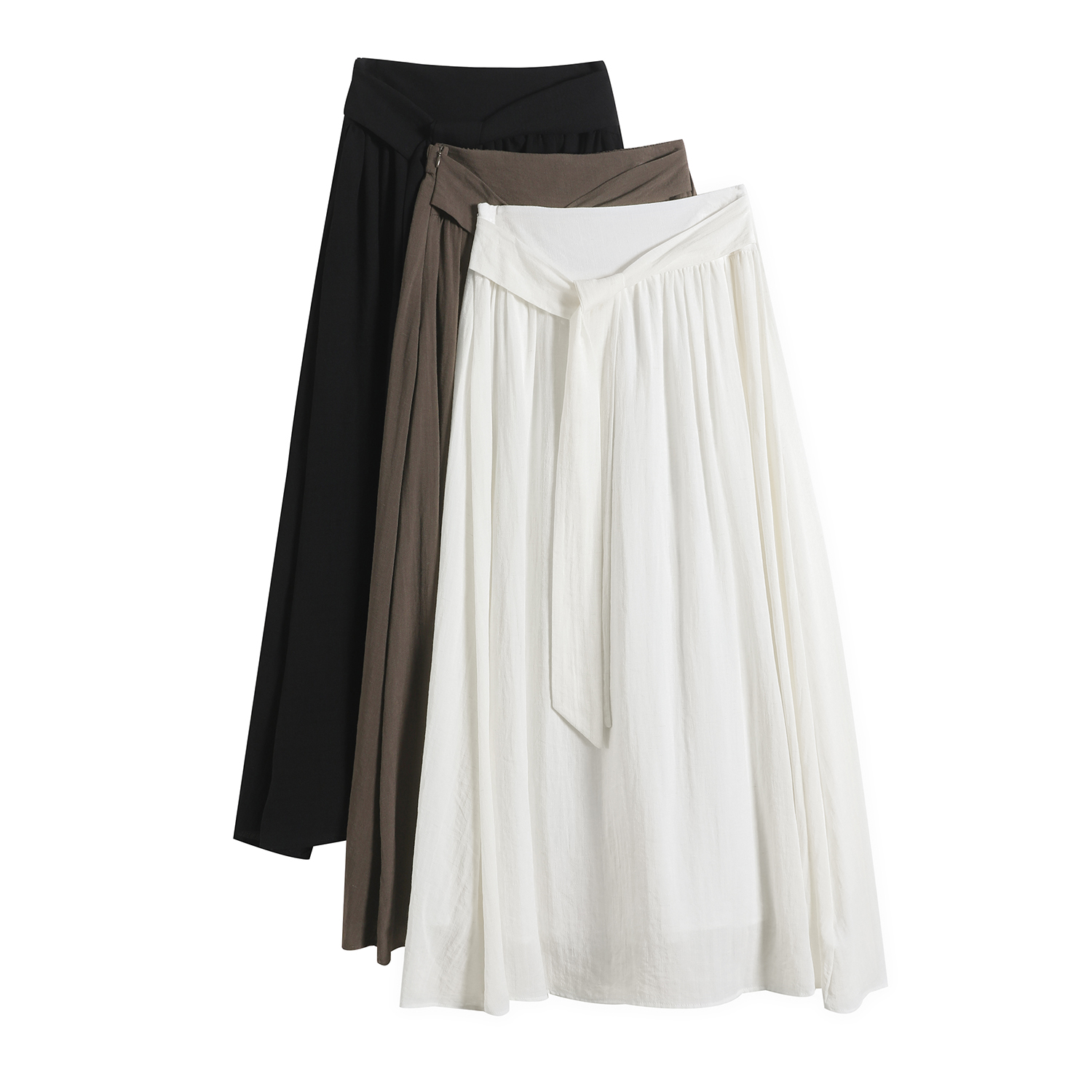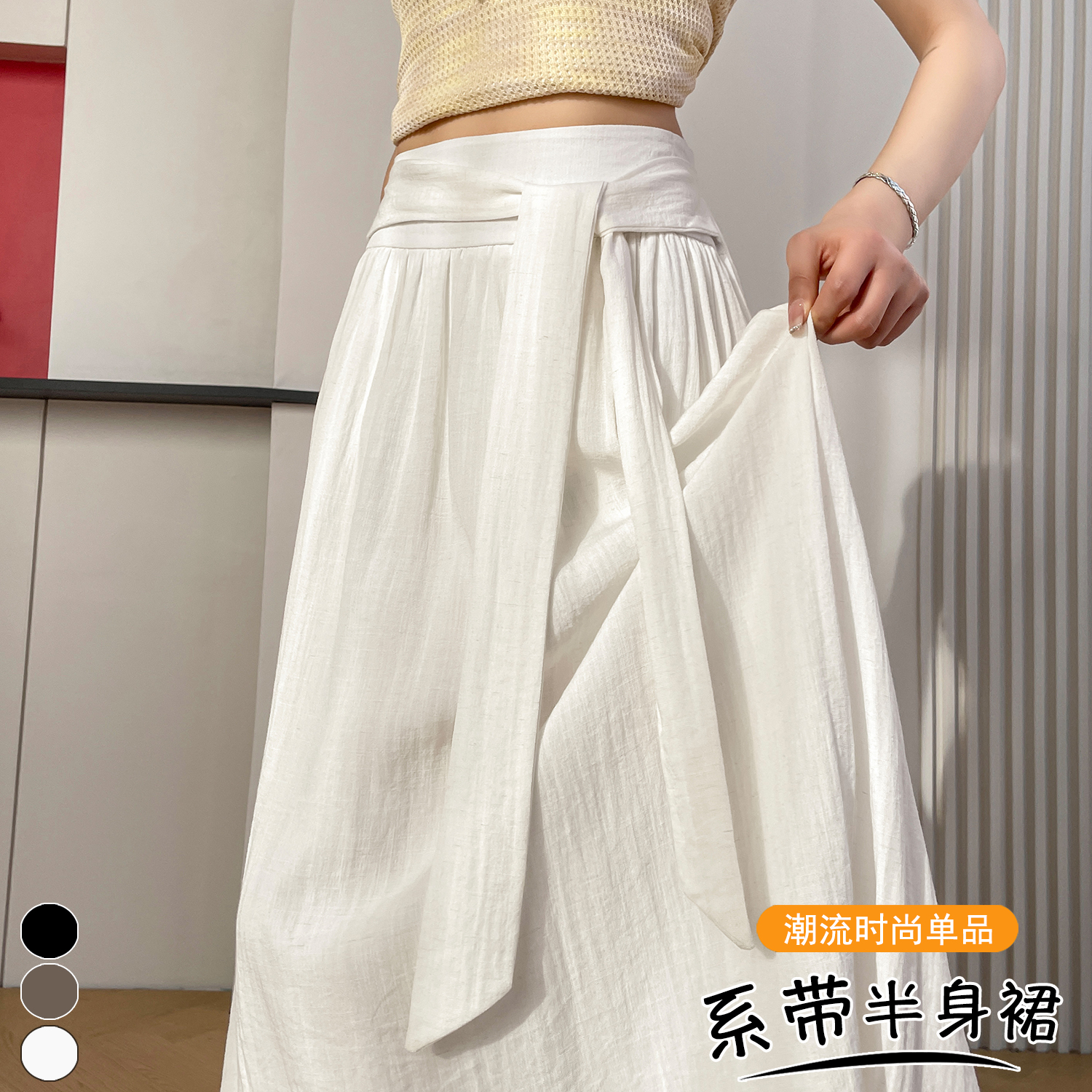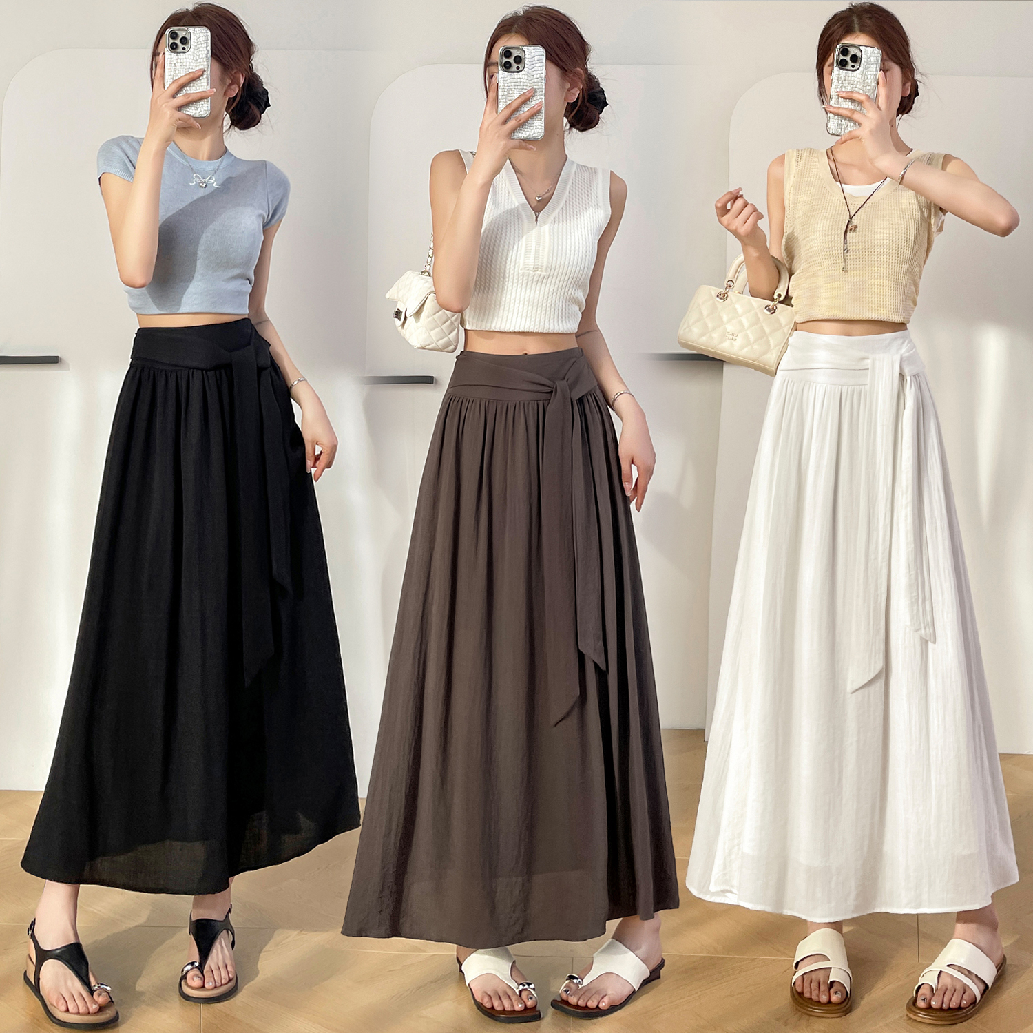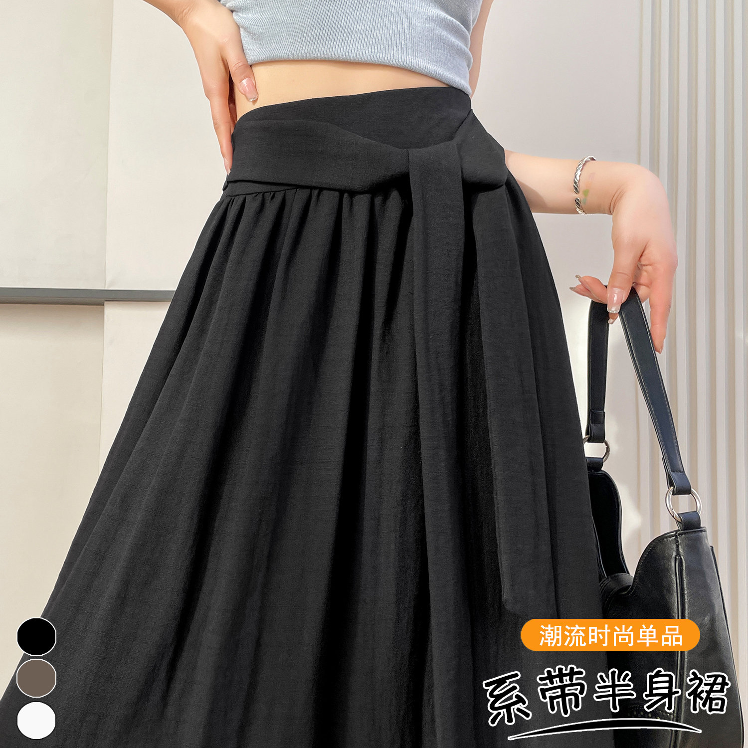 Home > 短裤、半身裙 > BY13218# 春夏新款松弛感系带半身裙慵懒风高腰气质大摆裙A字长裙 服裝批發女裝批發服飾貨源