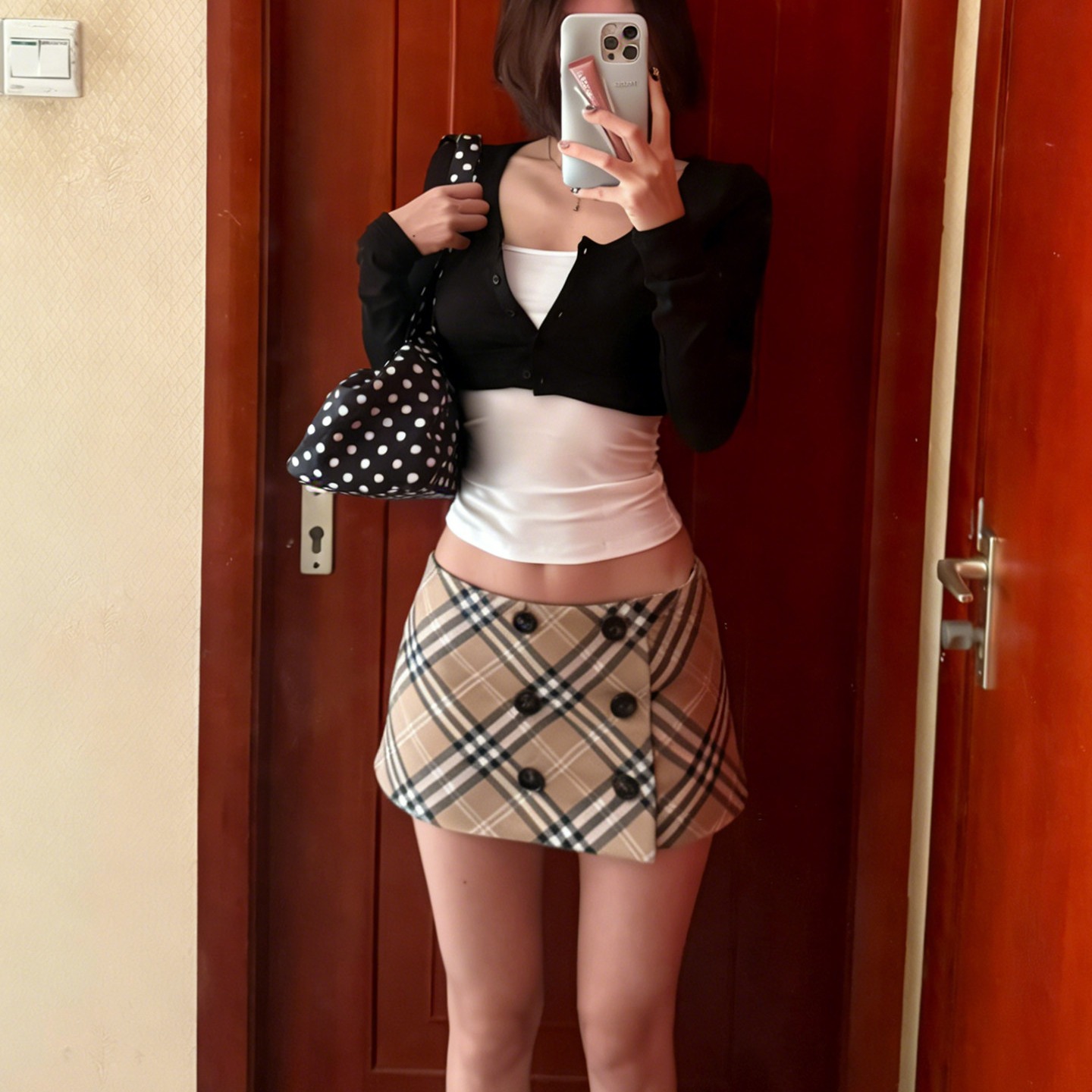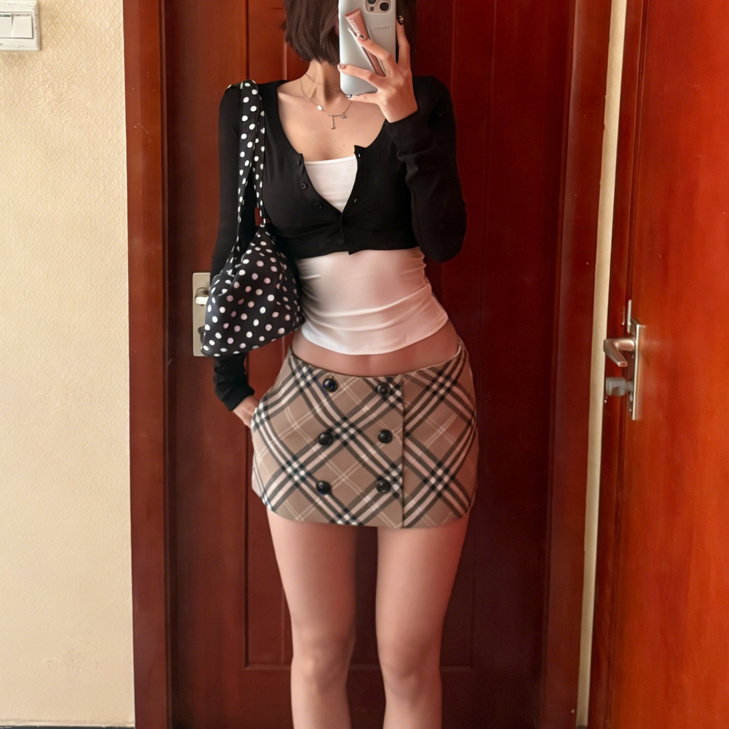 BY13382# 夏季绝美巨好看a字半身裙女低腰格子包臀裙子小个子短裙 服裝批發女裝批發服飾貨源