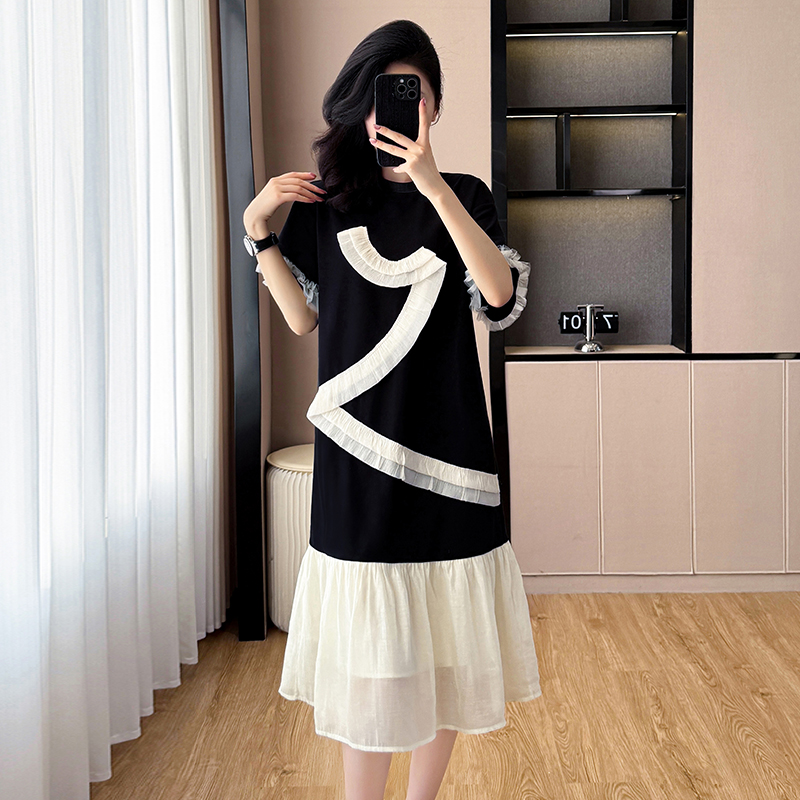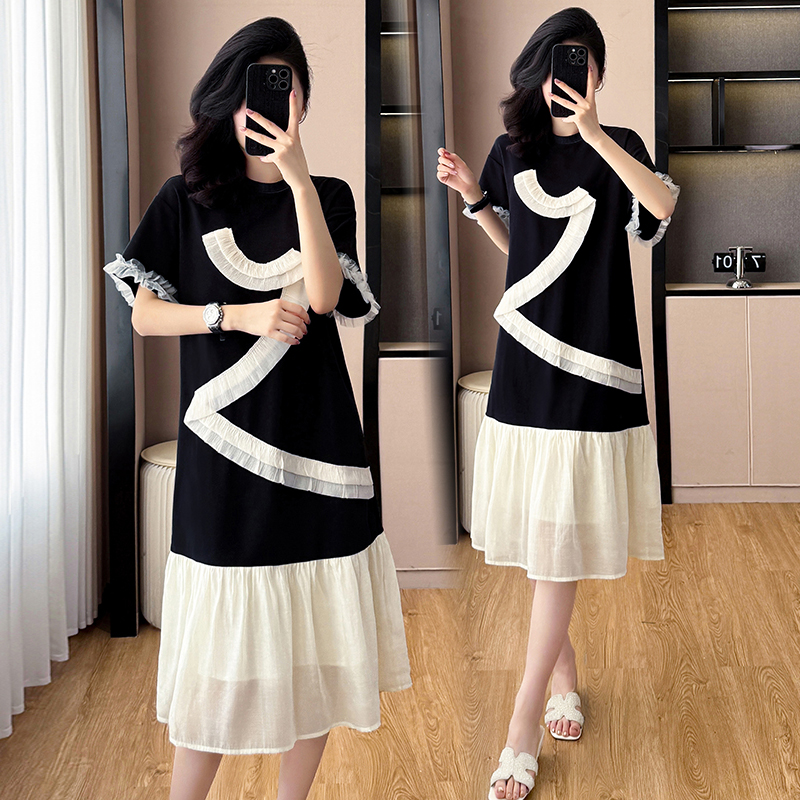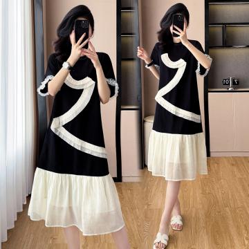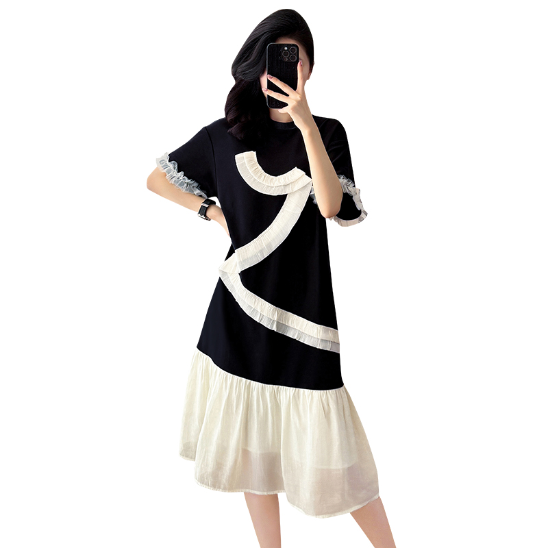 Home > 短袖连衣裙、夜店装 > BY14351# 大码女装夏季新款撞色拼接设计感宽松遮肚中长款连衣裙 服裝批發女裝批發服飾貨源