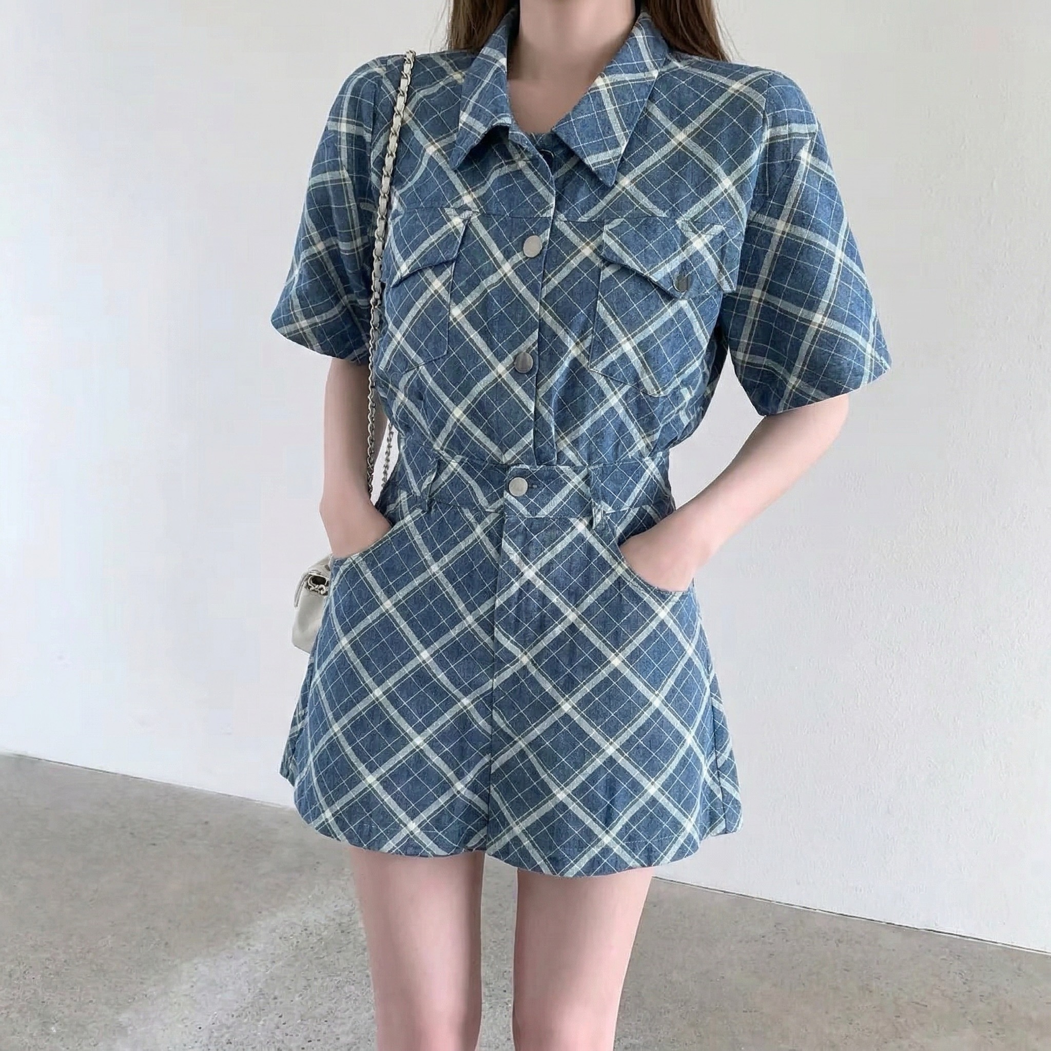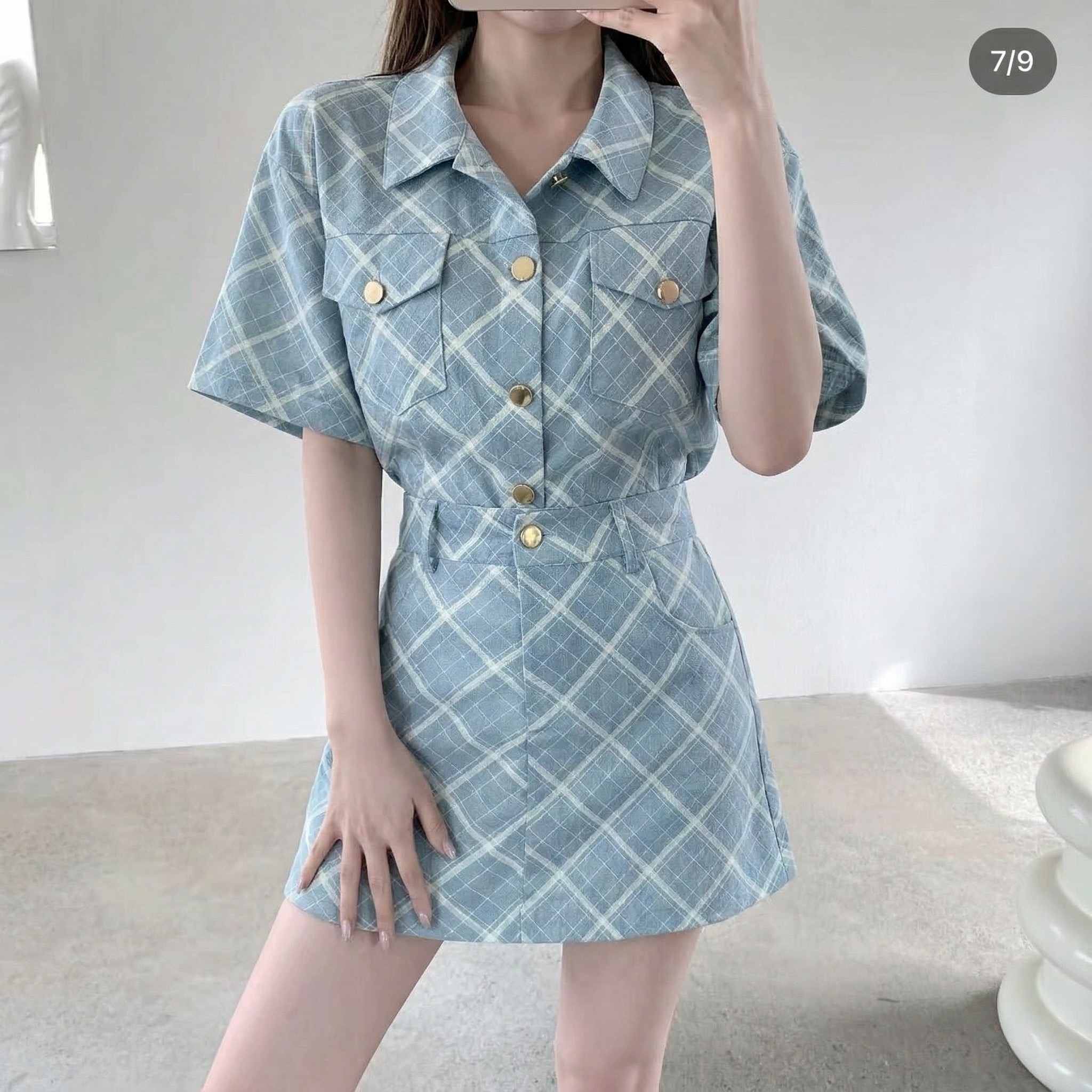 chic休闲时尚菱格牛仔套装女 服裝批發女裝批發服飾貨源
