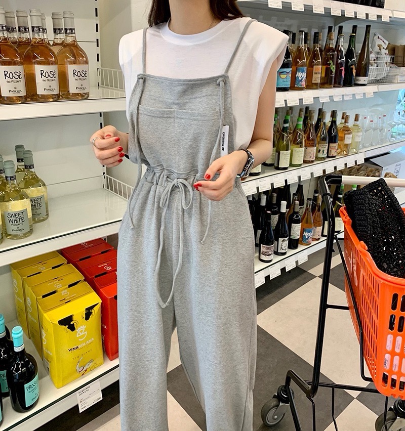 高腰阔腿裤休闲裤洋气减龄背带裤 服裝批發女裝批發服飾貨源
