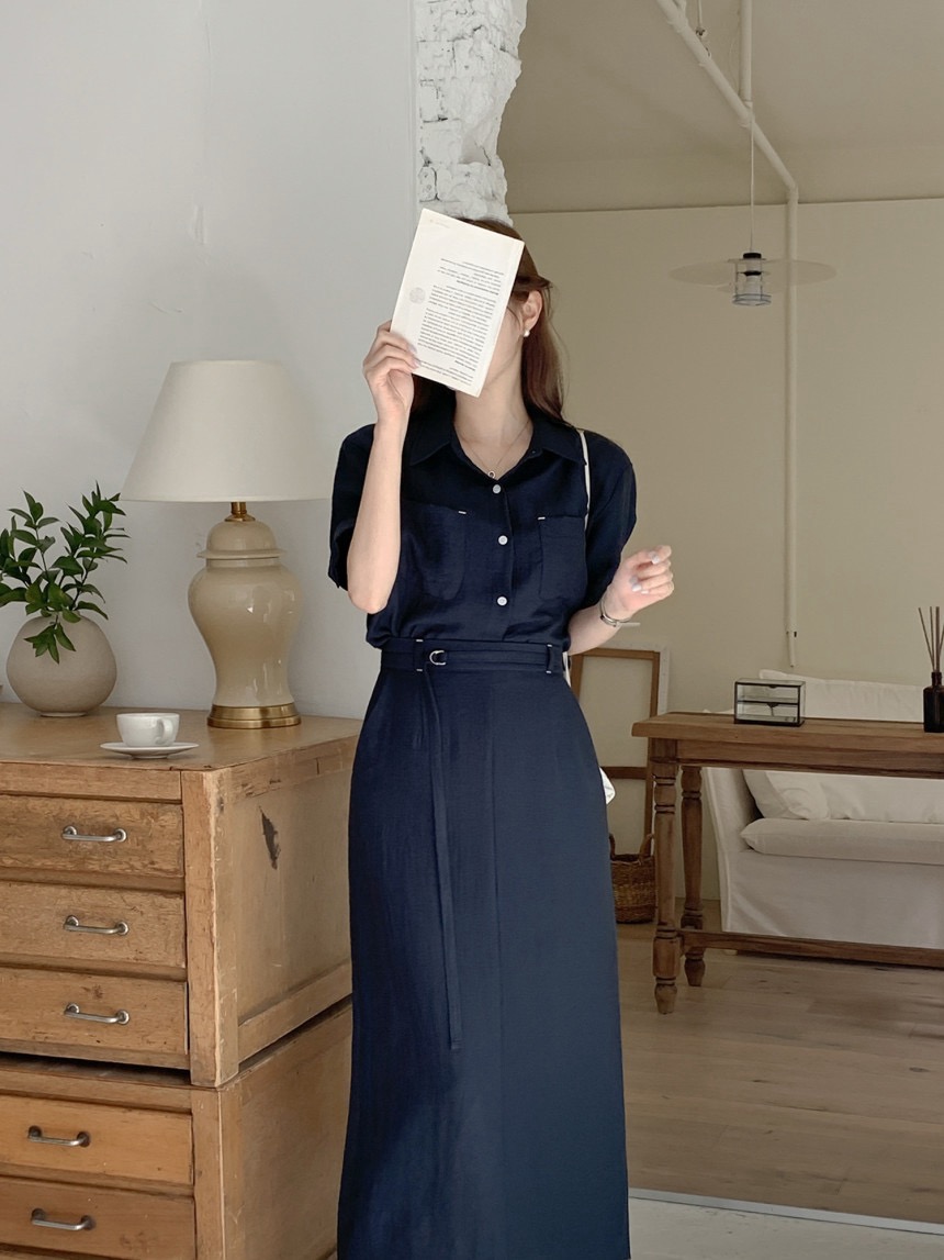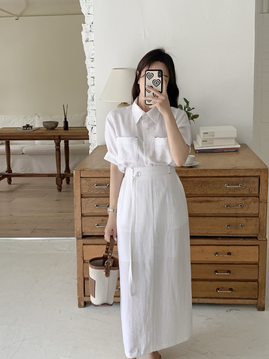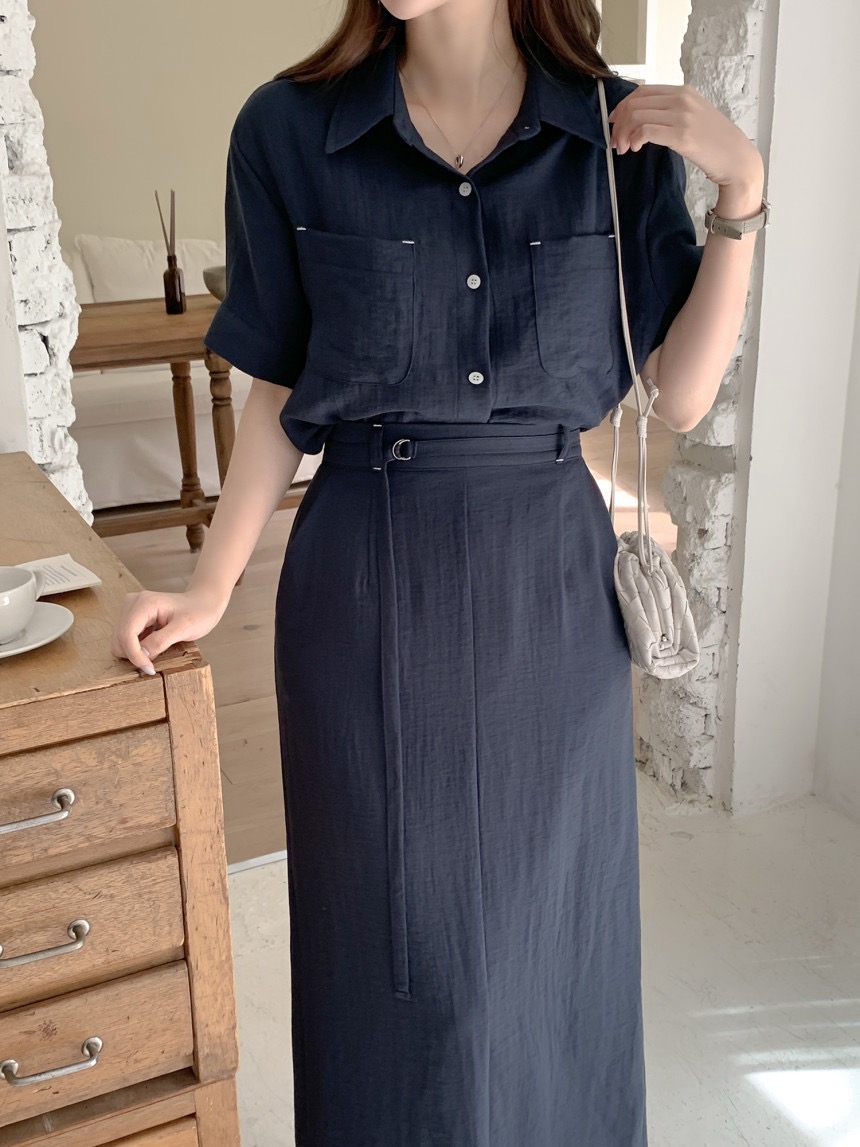 时尚通勤短袖衬衣+长款修身半身裙 服裝批發女裝批發服飾貨源