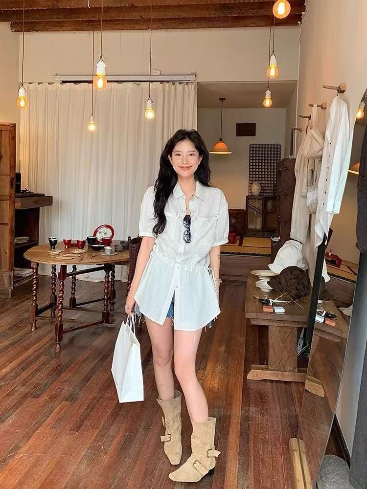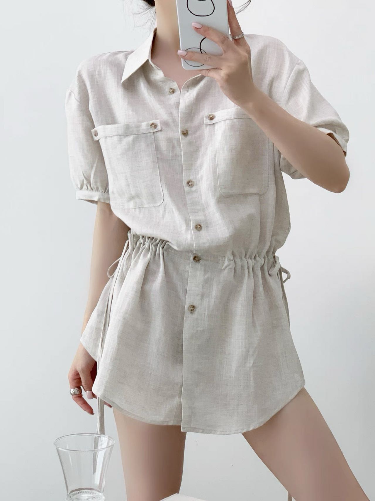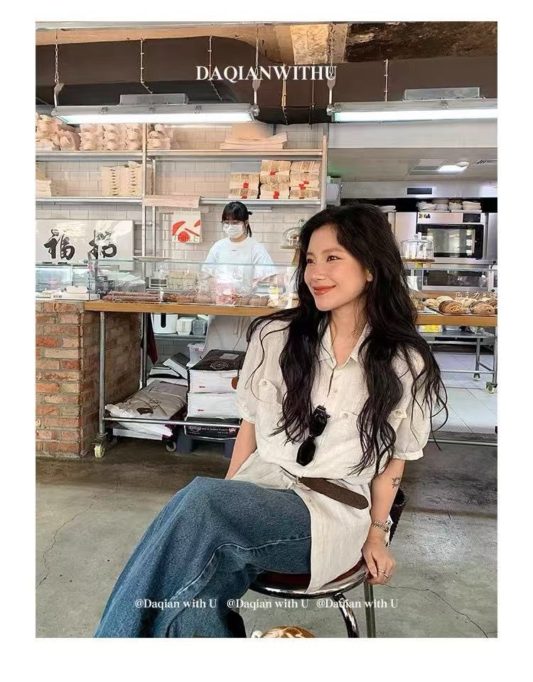 Home > 短袖雪纺衫、衬衫、上衣 > 韩式天丝亚麻口袋衬衫裙女夏季薄款休闲短袖宽松衬衣 服裝批發女裝批發服飾貨源