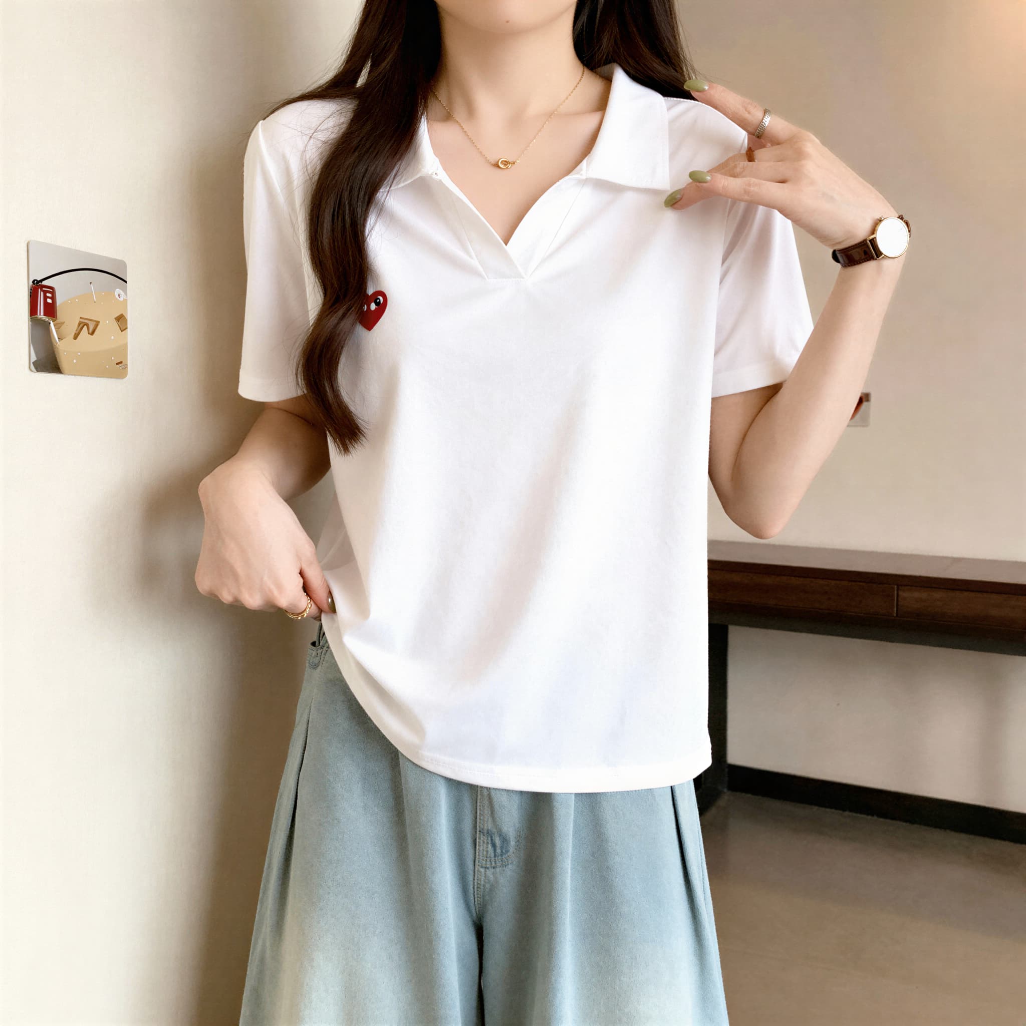 BY14397# 大码女装韩版Polo领正肩短袖t恤夏季胖MM宽松显瘦百搭遮肚子上衣 服裝批發女裝批發服飾貨源