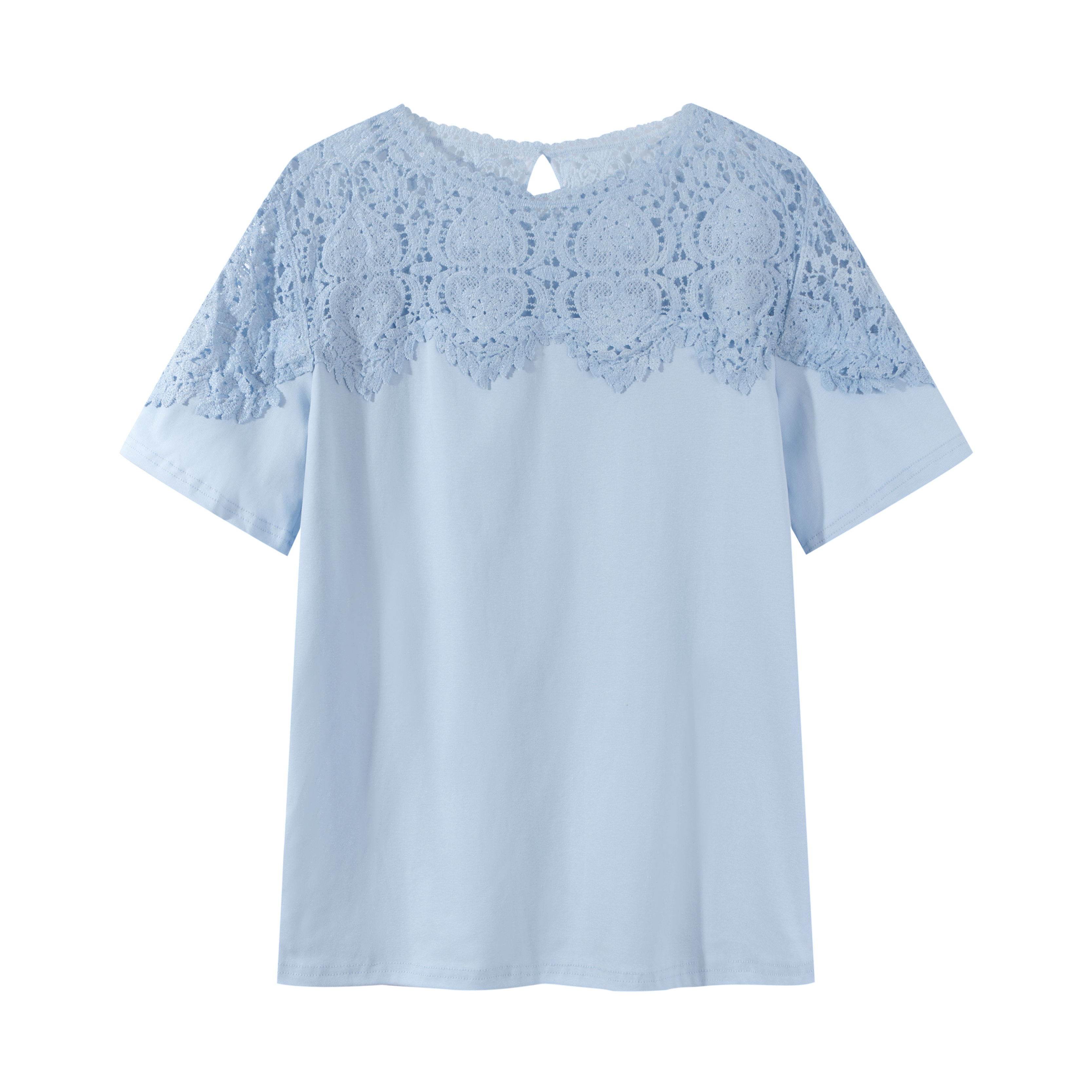 BY14404# 大码欧货蕾丝钩花拼接短袖t恤女新款夏季设计感漂亮别致上衣 服裝批發女裝批發服飾貨源