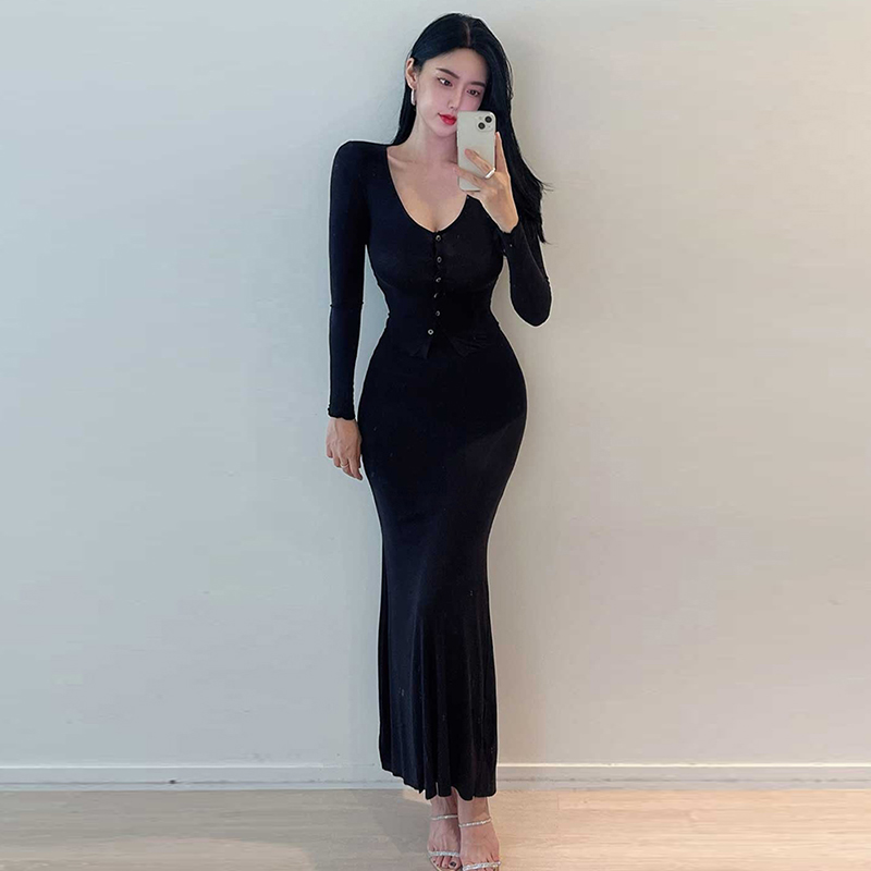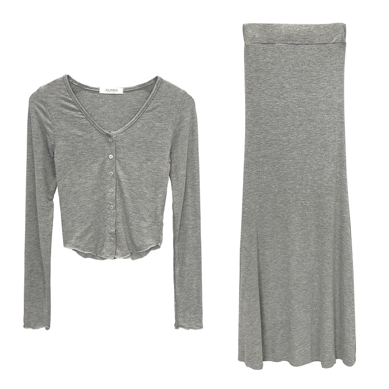 BY14870# 韩国东大门修身性感纯欲显身材短款长袖开衫+鱼尾半身裙两件套女 服裝批發女裝批發服飾貨源